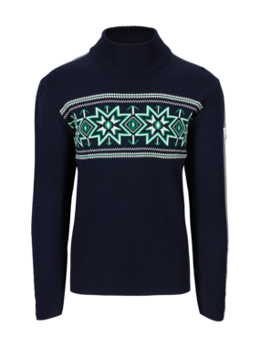 With design cues from our 1976 Innsbruck Winter Olympics sweater, the Tindefjell is a sporty sweater made of 100% skin soft merino wool. The merino wool sweater features a comfortable and soft medium high neck. An enlarged, refined version of the classic Norwegian eight-petal rose brings hints of snow crystals and winter stars to the design.