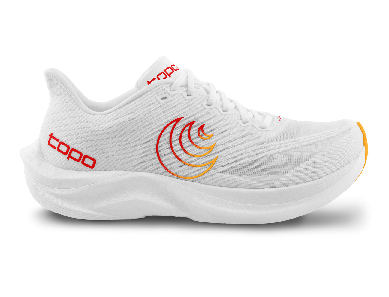 Featuring a 100% superfoam midsole, this shoe delivers high-energy rebound with every stride, offering explosive speed without added stiffness. Topo’s signature fit ensures a roomy toe box for natural toe splay while keeping the midfoot and heel secure, complemented by a low heel-to-toe drop for a smooth and natural transition.