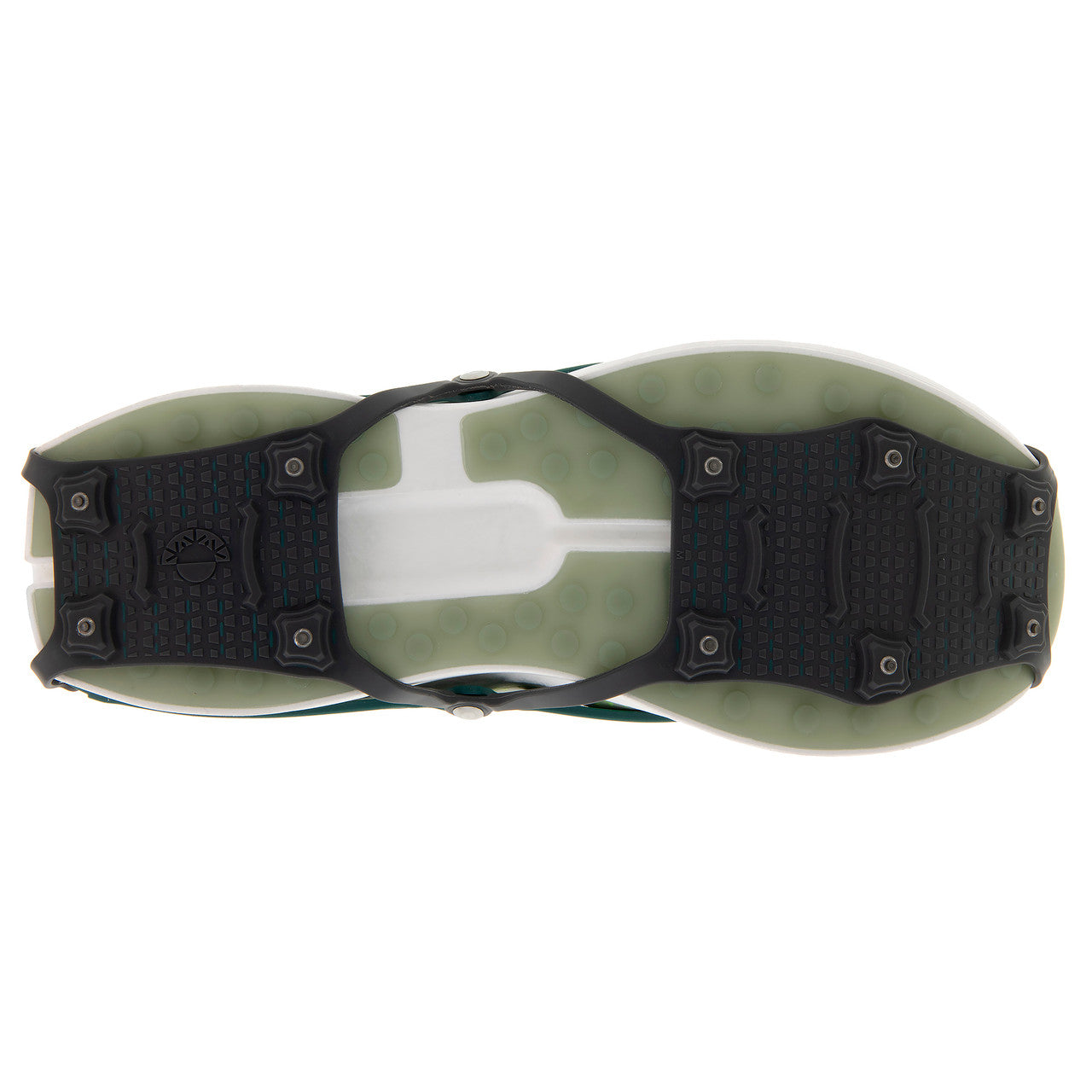 NANOspikes® footwear traction is ultralight, yet tough enough to stand up to abrasion from streets and sidewalks. Ten low-profile, ultra-durable tungsten carbide spikes per foot are integrated into two TPU plates and provide exceptional grip. The plates are flexible, wear resistant, and disperse force evenly across the sole. This design results in a very low-profile fit with a minimal effect on stride, and is ideal for use on running shoes.