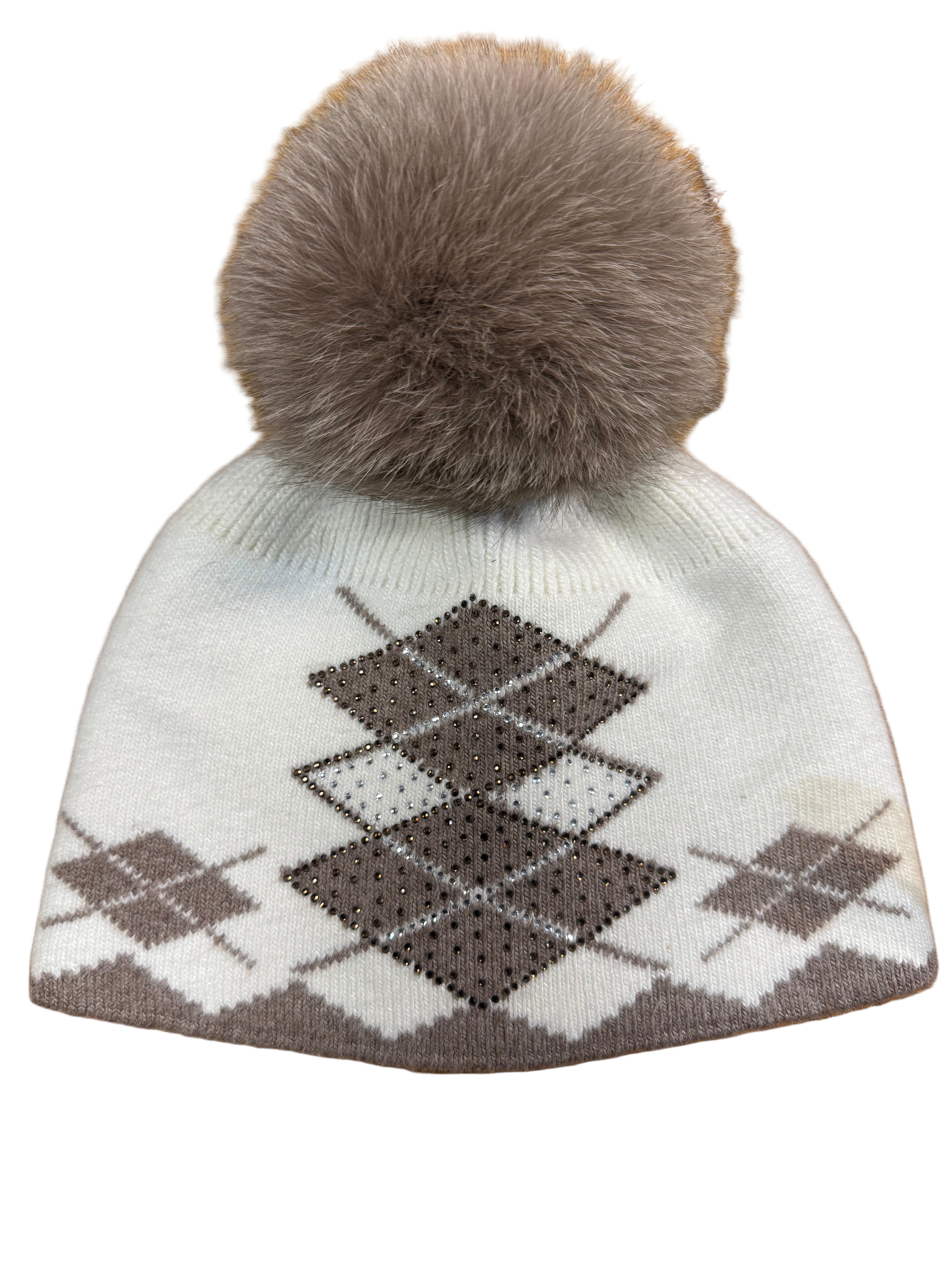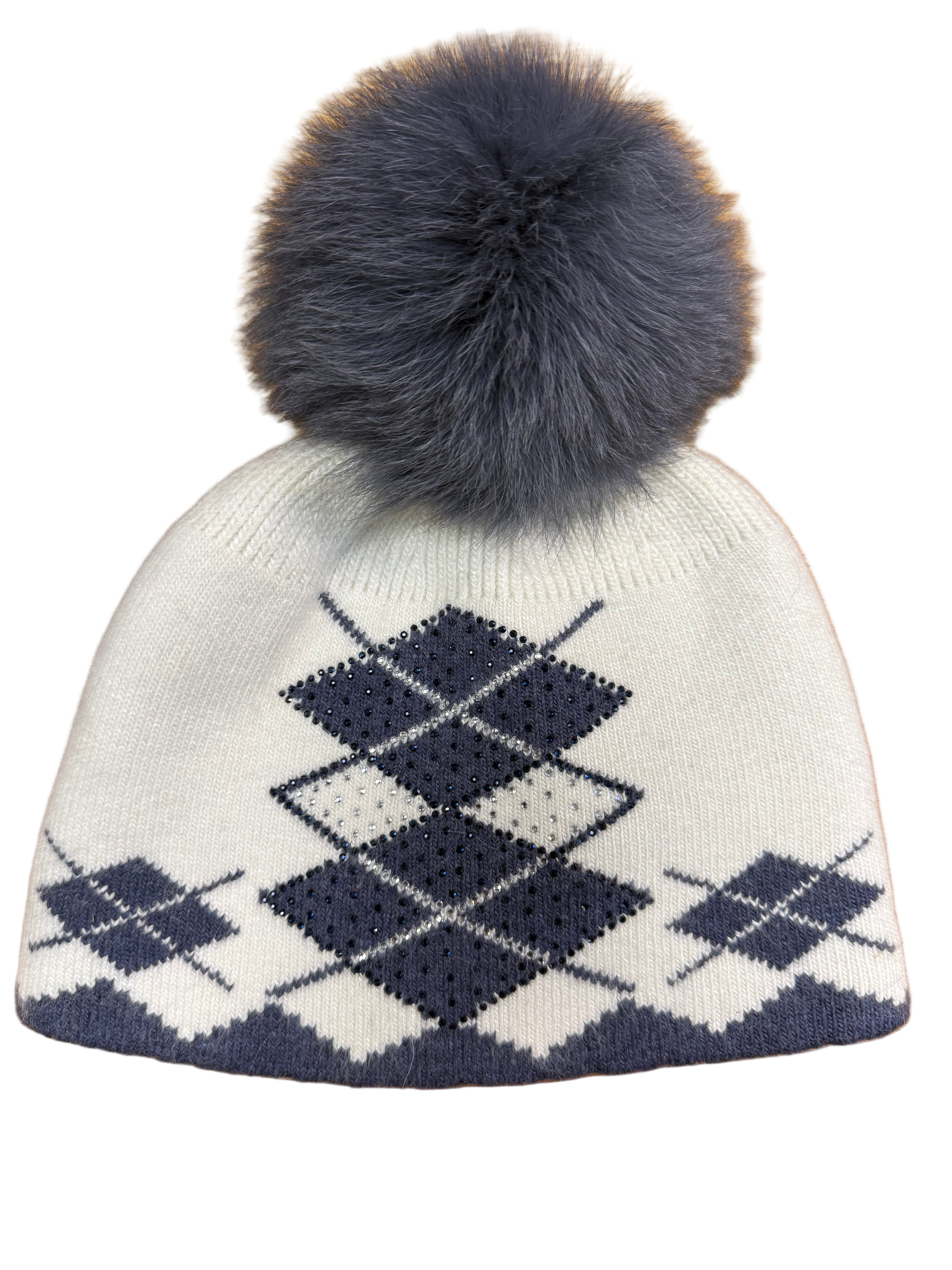 Mitchie's Matchings | Argyle Pattern Hat with Crystal and Fox Fur Pom