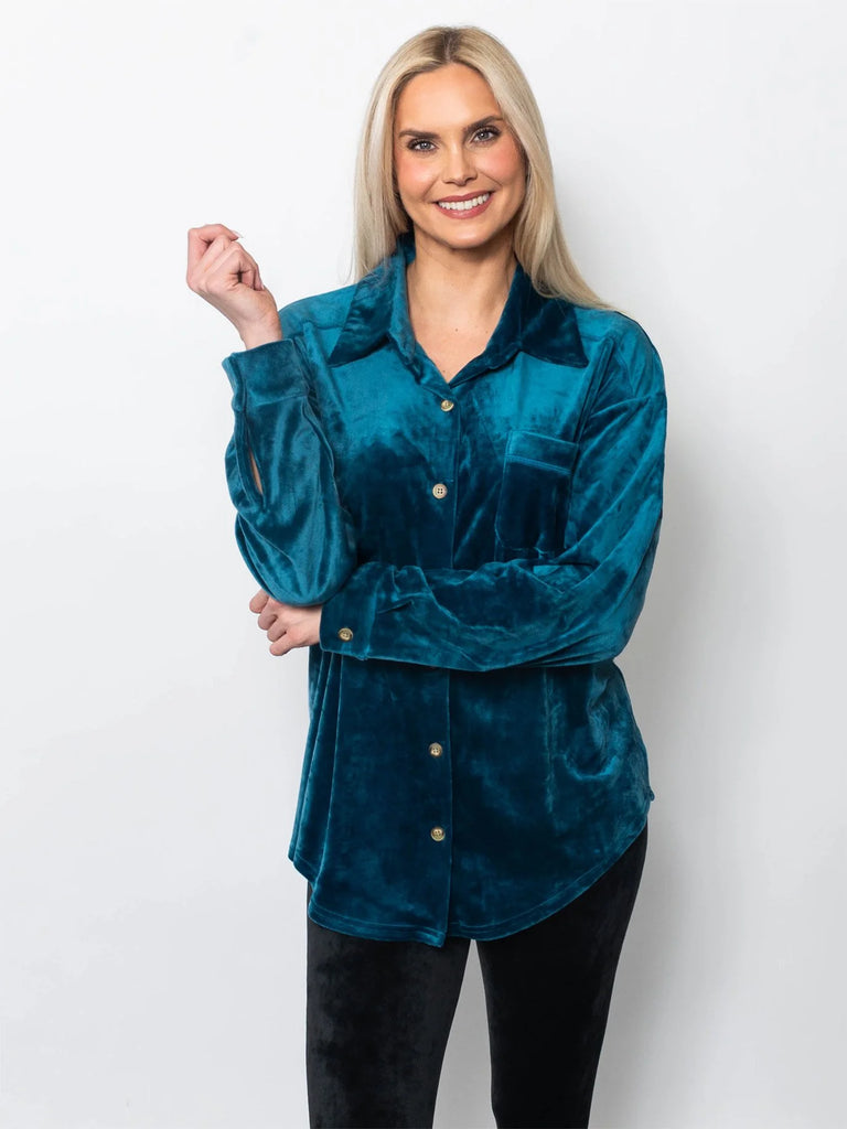 SnoSkins | Plush Microfleece Button Up Shirt | Women's | Teal