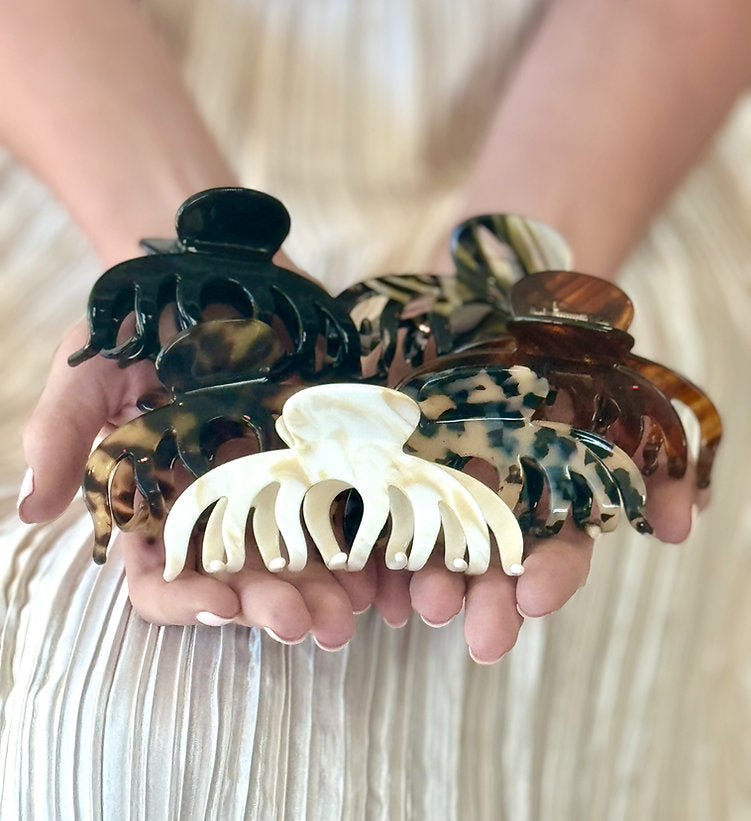 - Premium Material & Artisanal Craftsmanship: Made from high-quality Italian acetate, each Anne Jaw clip is hand-made and hand-polished to a smooth, glossy finish.