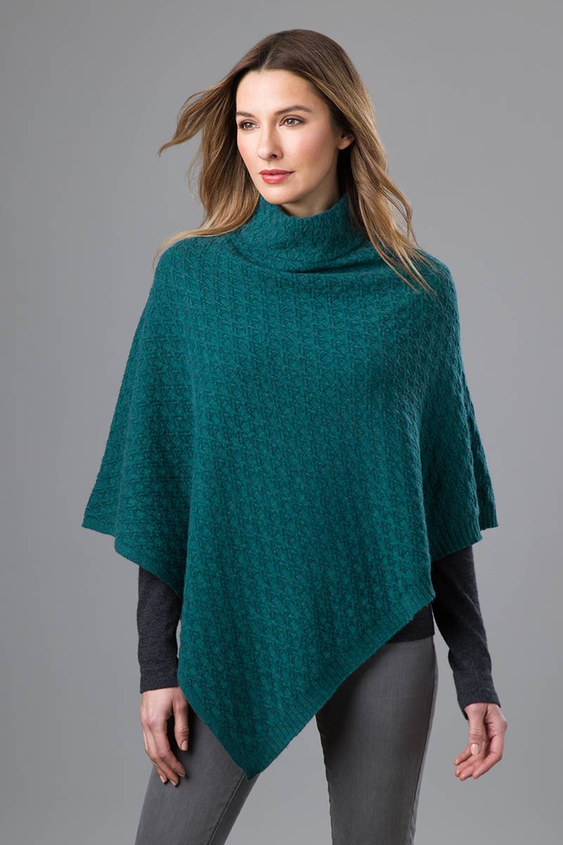 A cashmere poncho for any occasion. Modern design for sophisticated style. This cable knit piece pairs with anything and looks perfect anytime of year.