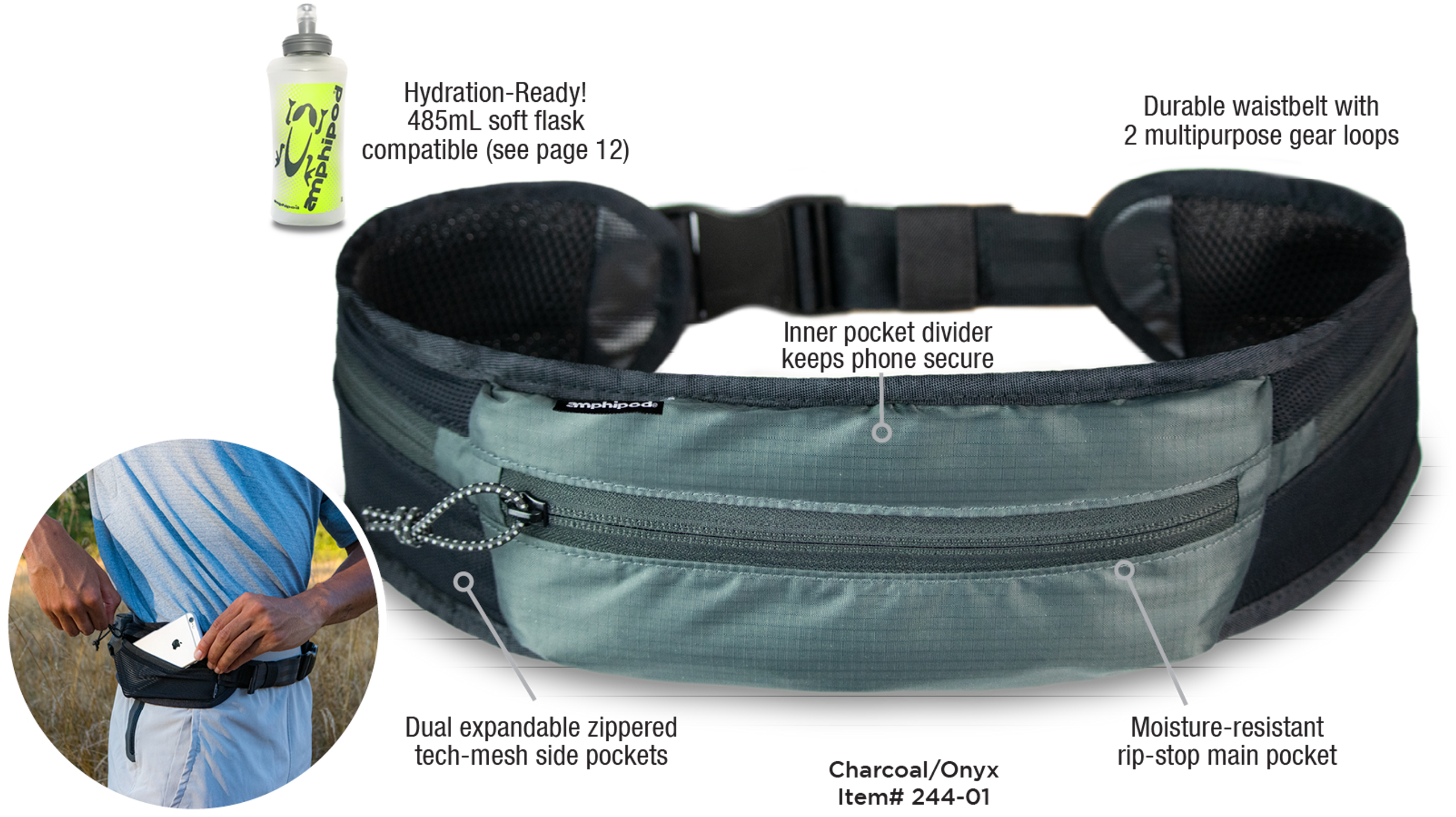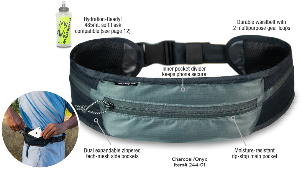- Hydration compatible: Works seamlessly with Amphipod Soft-Tech™ flasks (16 oz) for customizable hydration on the go.