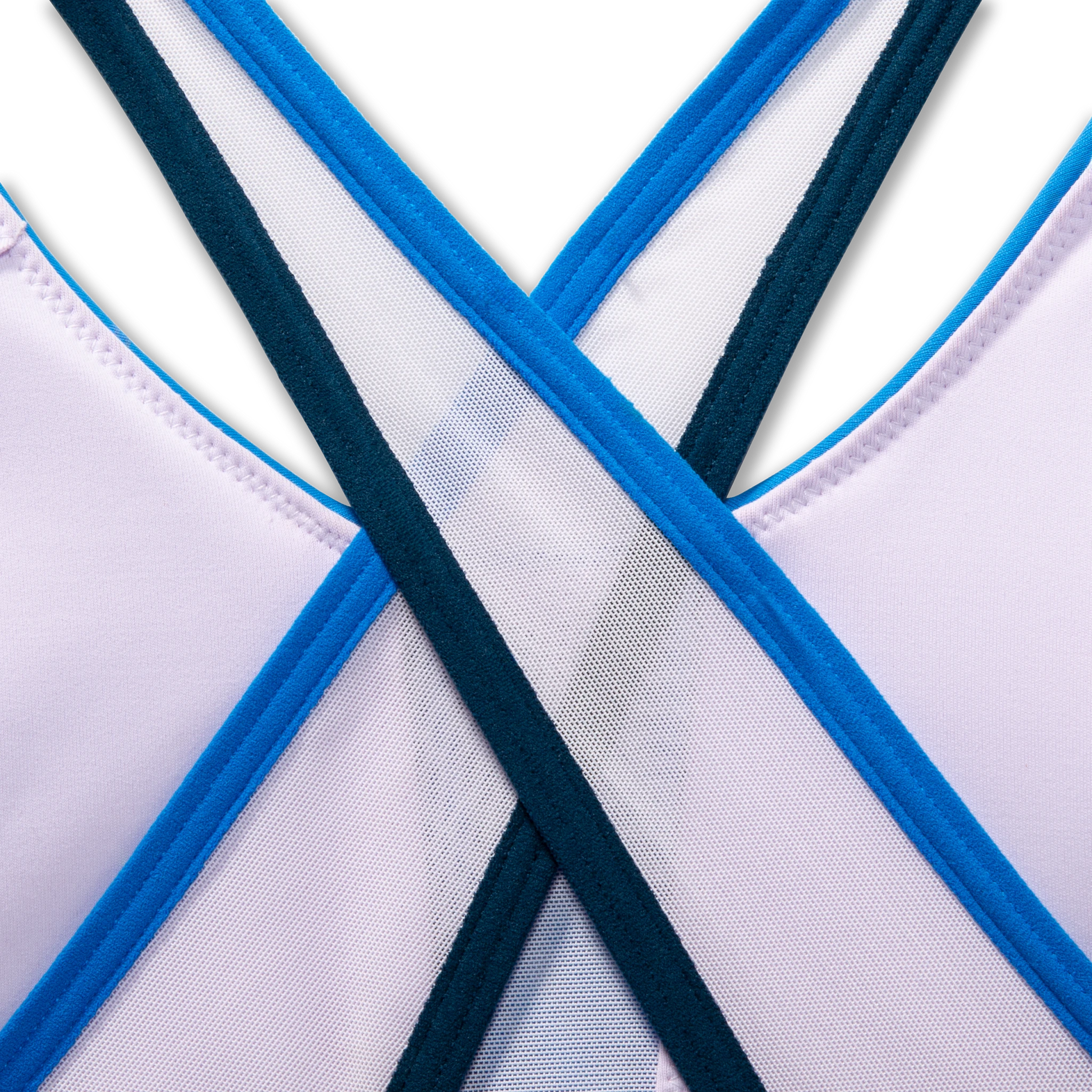 A strappy open back and strategic mesh in high-heat zones provide ventilation and bold style.