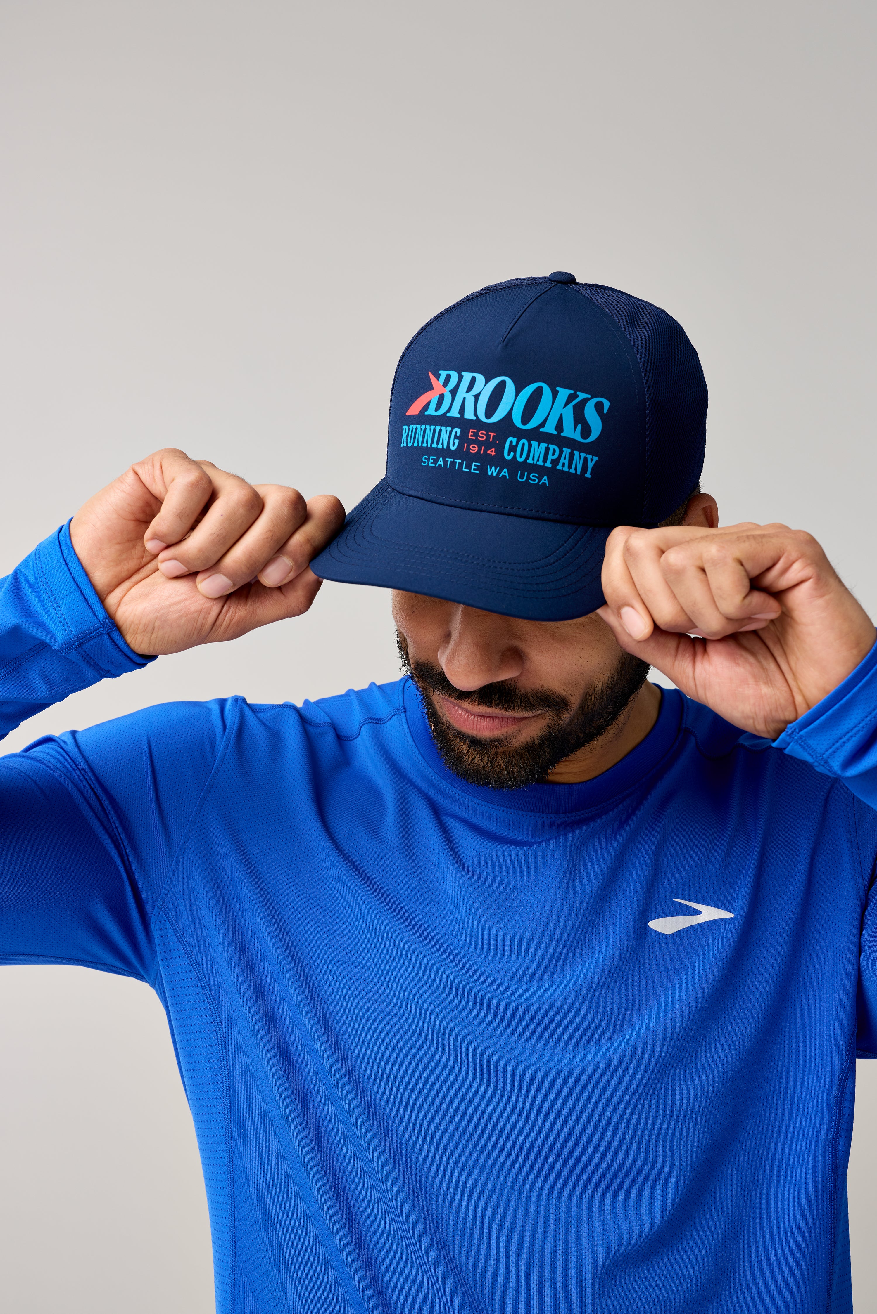 Brooks | Surge Trucker Hat | Unisex | Navy/Brooks Running