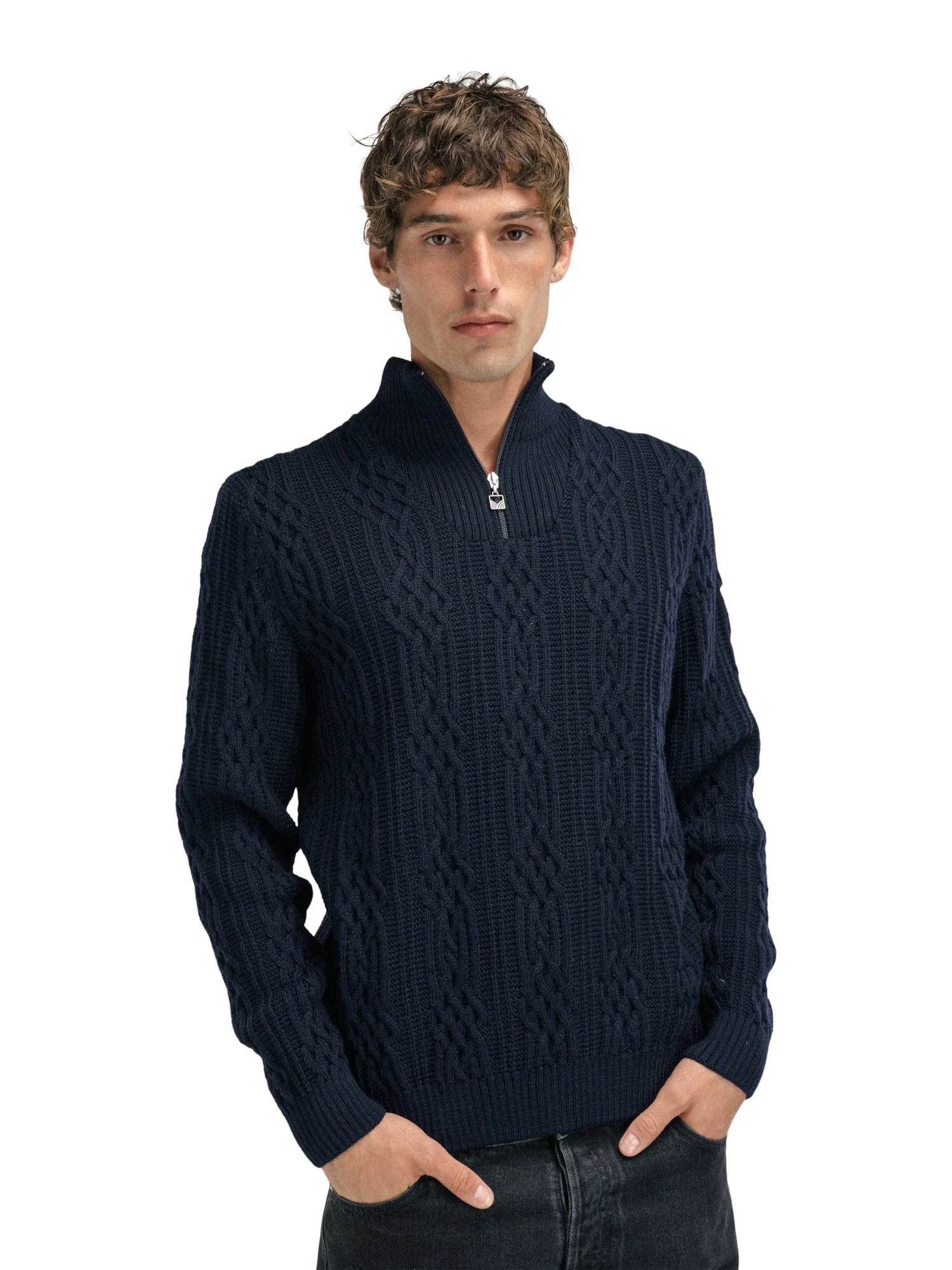 Featuring a quarter-zip high neck lined with skin-soft Merino wool, the Hoven provides extra warmth and a smooth feel against the skin. Its cable-knit design gives it a traditional, textured look while maintaining a versatile regular fit that works as a mid layer for outdoor adventures or as a cozy everyday piece.