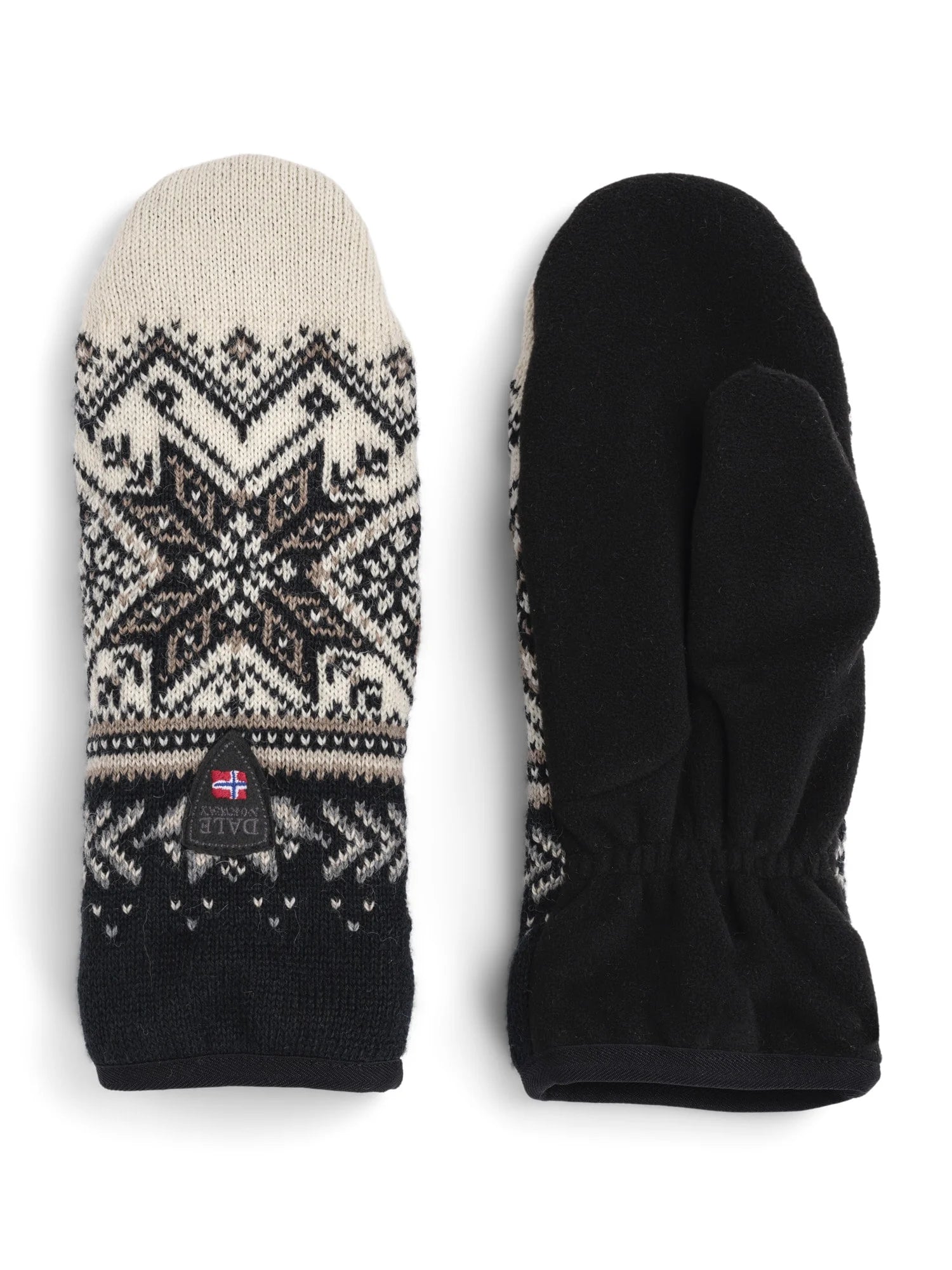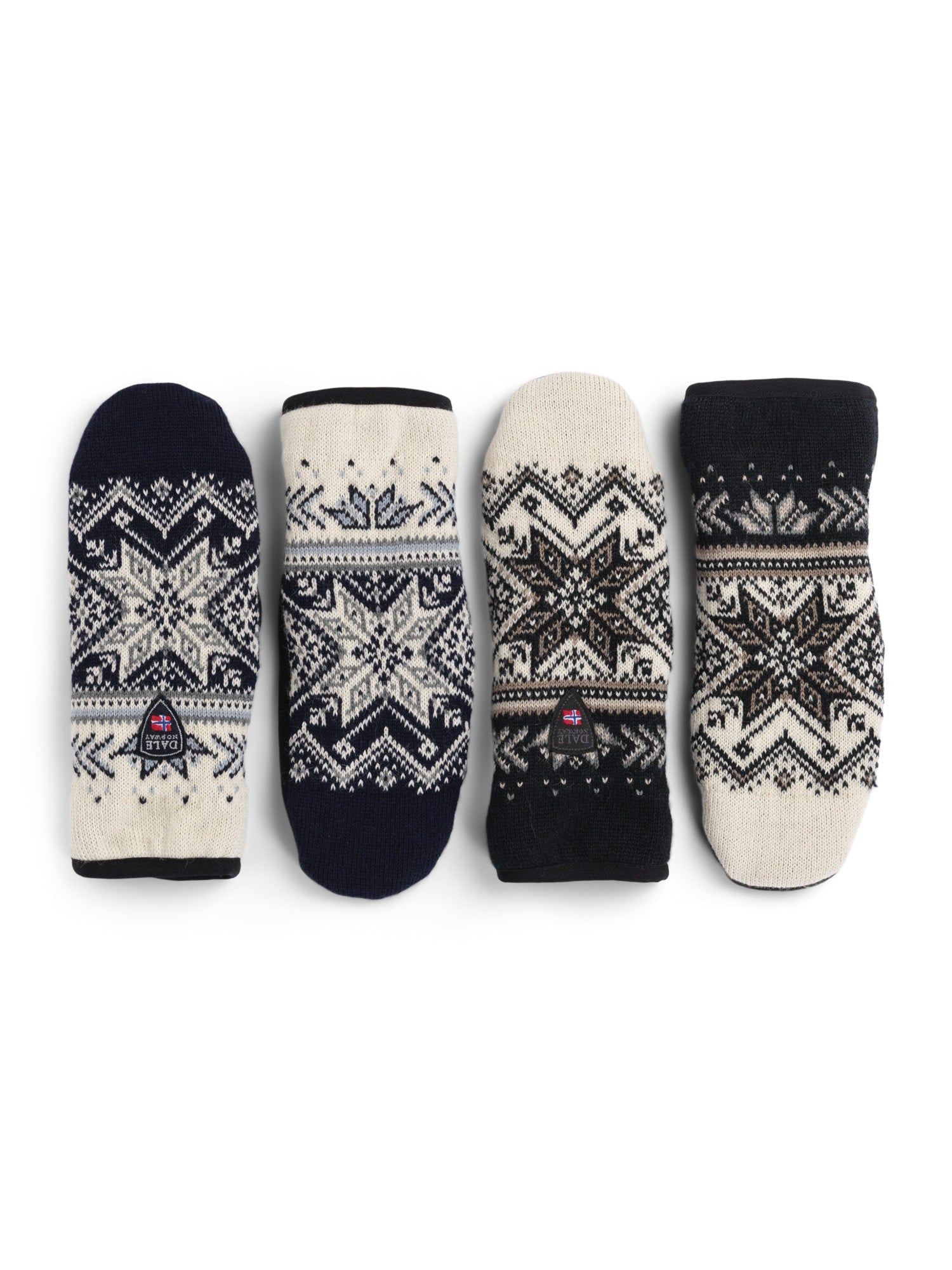 The Dale of Norway Vail Mittens combine authentic Norwegian design with practical winter performance. Featuring the same classic pattern as the Vail sweater—the official team sweater of the U.S. Alpine and Snowboard Team for the 2006–07 season—these mittens highlight the traditional eight-petal rose motif with added winter-inspired details. A true blend of heritage and sport, they are perfect for skiing, snowboarding, or everyday cold-weather wear.