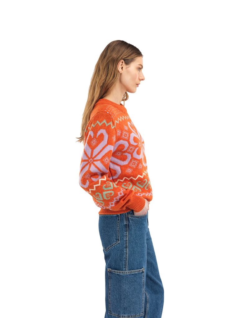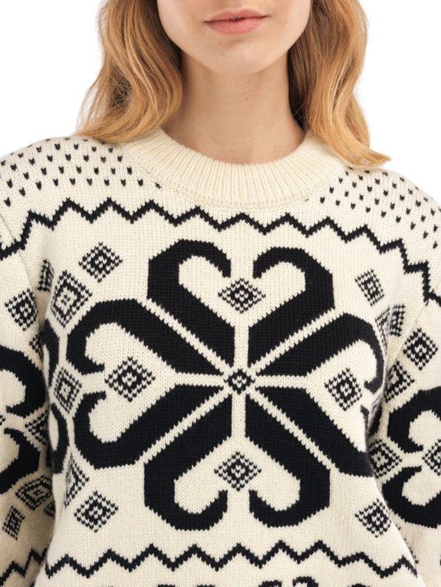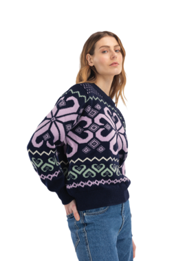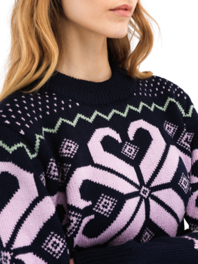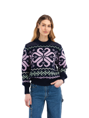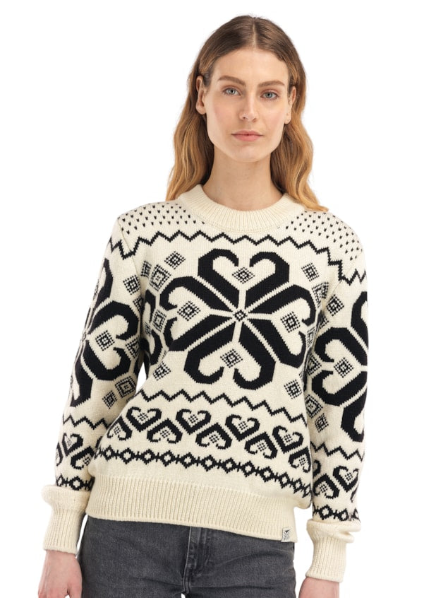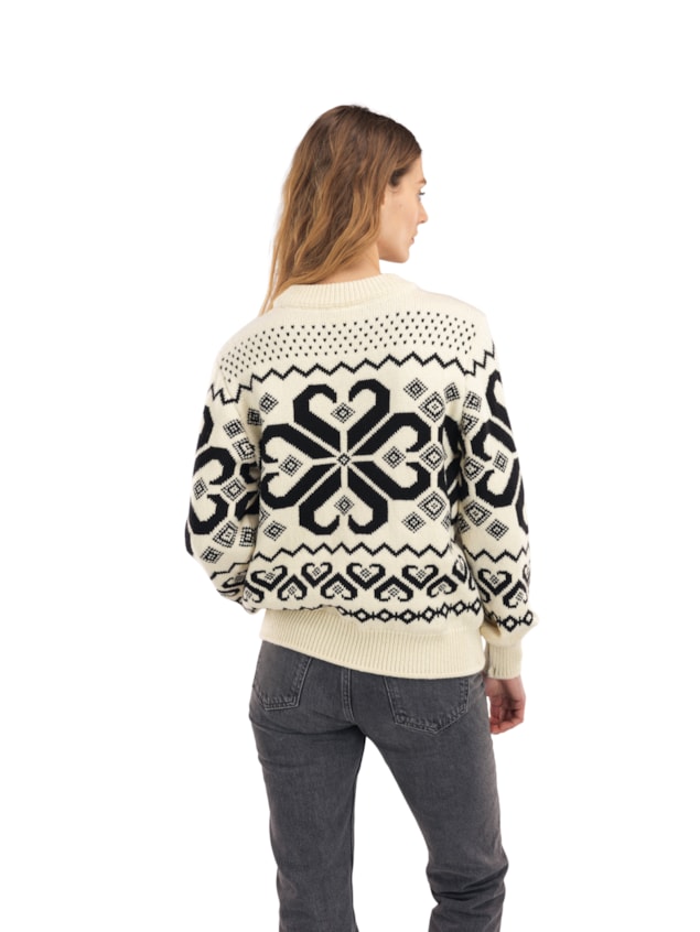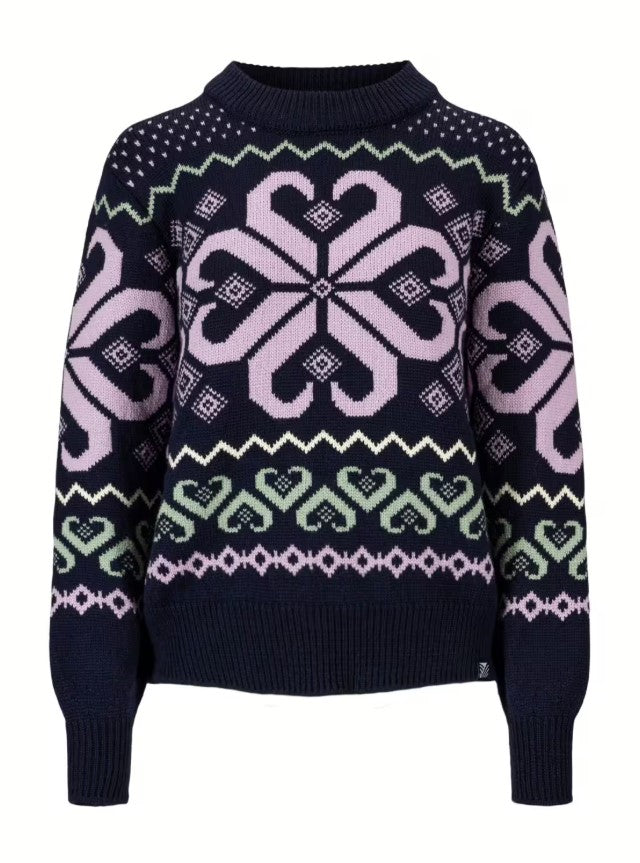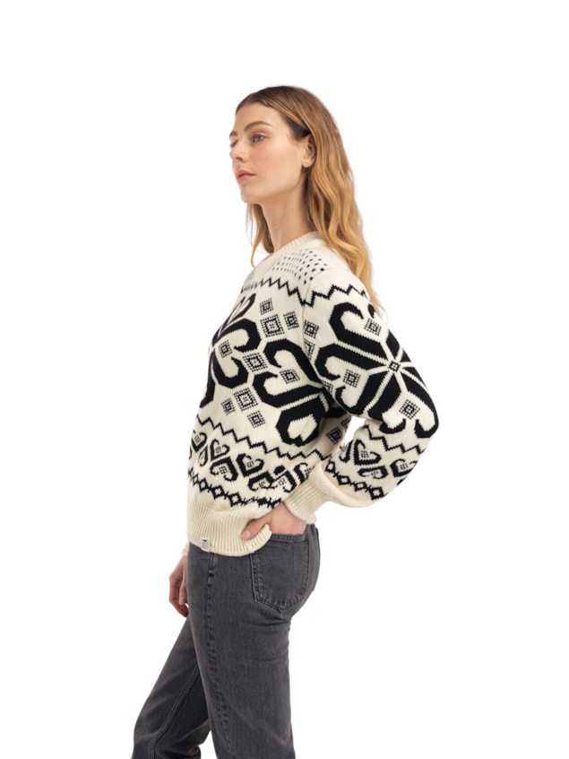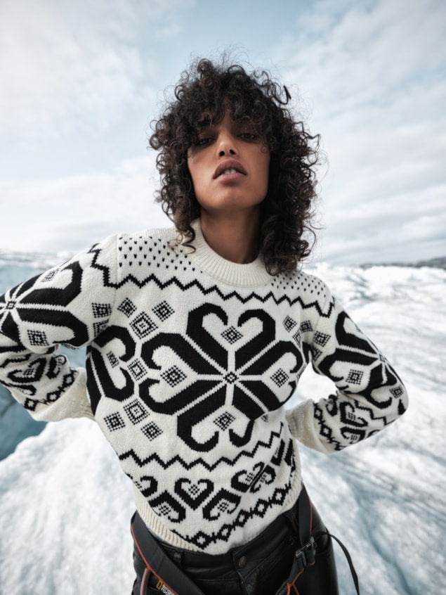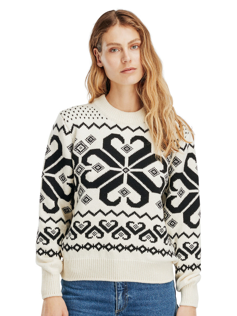 Falkeberg sweater is a beautiful round neck sweater, knitted in soft merino wool. The 4-colored Norwegian pattern is from our official Olympic sweater back in 1984, and has ribbed neck, sleeves and hem. The Falkeberg sweater will keep you warm and comfortable and will look good on the slopes & around town.