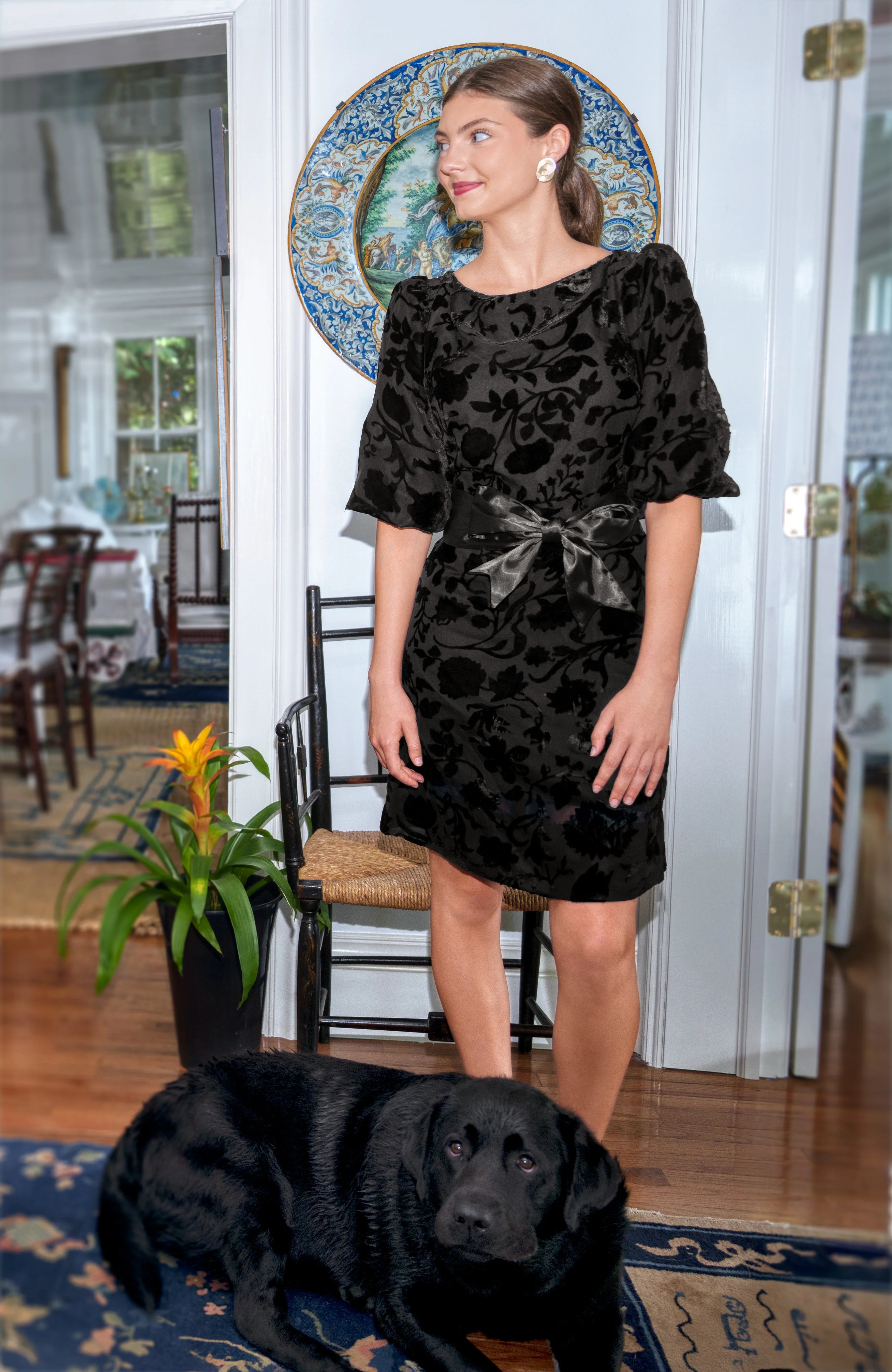The Floral Burnout Champs Bubble Dress by Gretchen Scott Designs is the perfect blend of comfort and couture-inspired detail. Its plush burnout velvet creates beautiful depth and dimension, while the bubble hemline and waist-defining belt enhance your shape. From day to night, this dress radiates timeless elegance and modern charm.