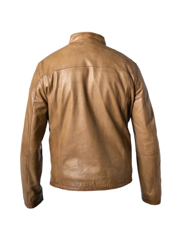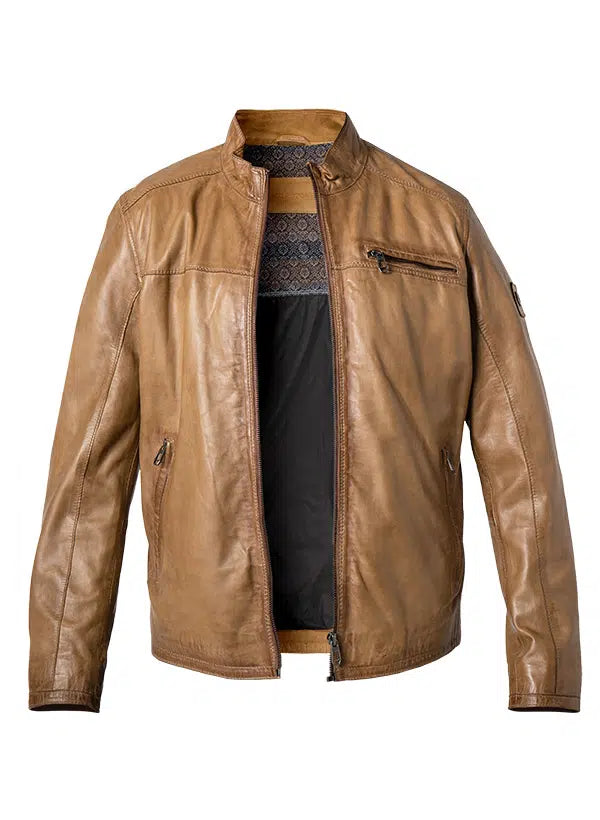 This leather jacket has a distinctive used effect thanks to a special finish. The model is made of soft lamb leather and impresses with its high-quality workmanship. A casual design for relaxed casual styles, which is rounded off with contrasting piping on the zippers.