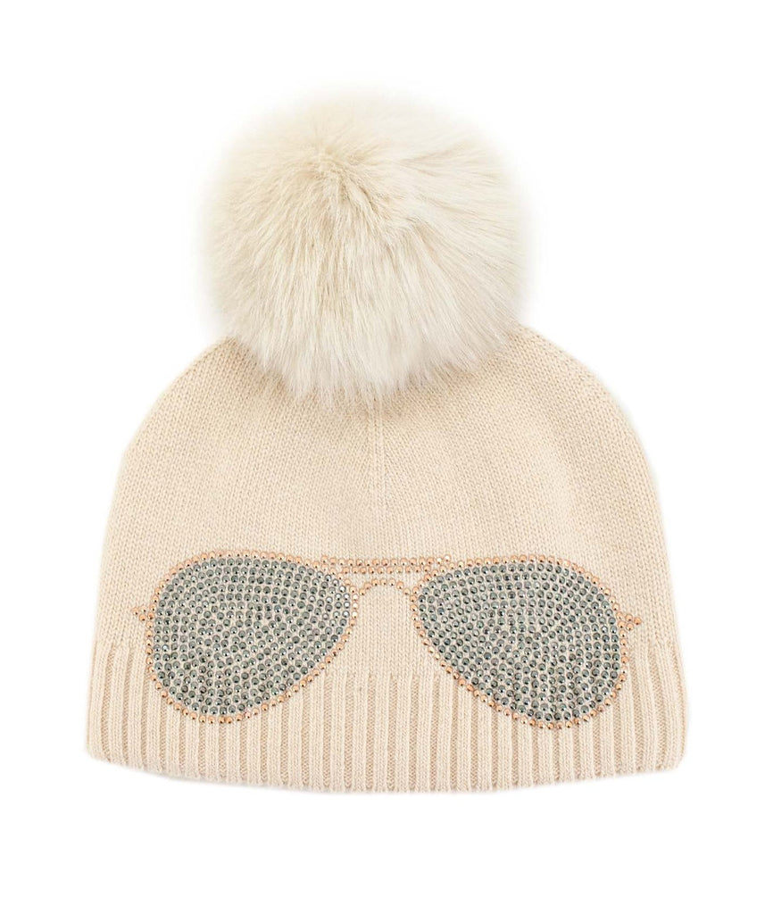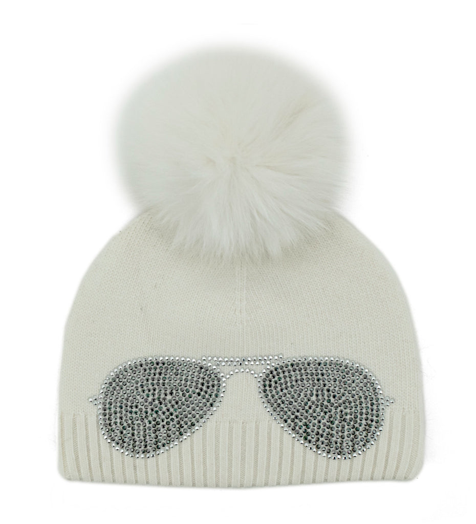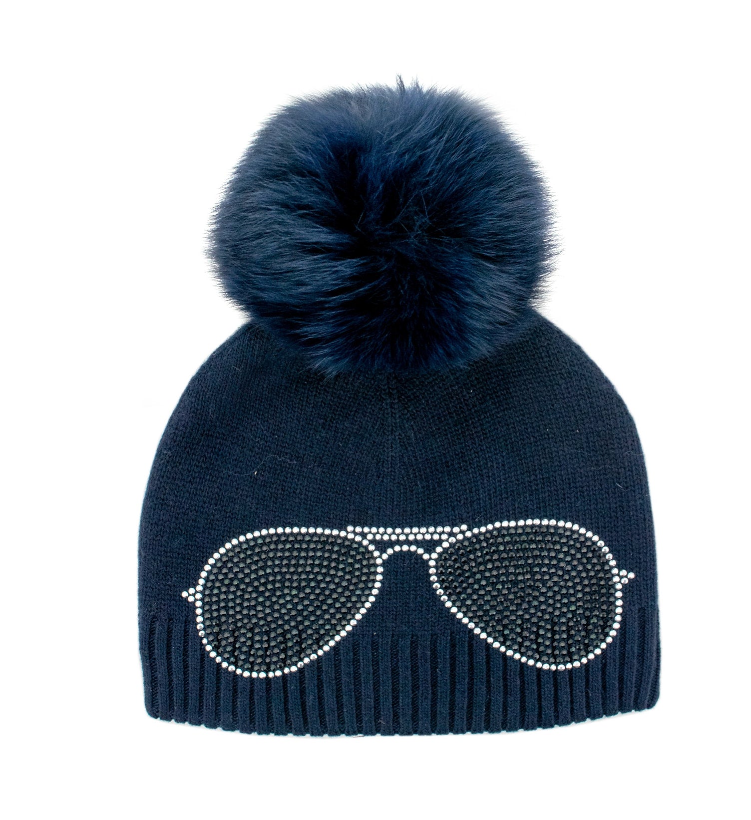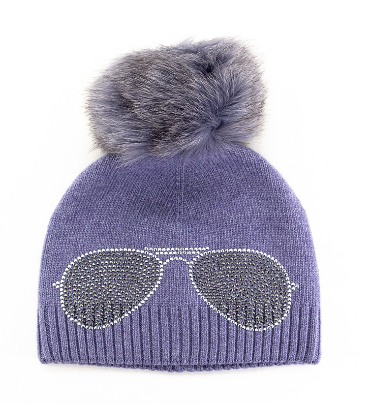 Mitchie's Matchings | Aviator Knitted Hat with Fox Fur Pom