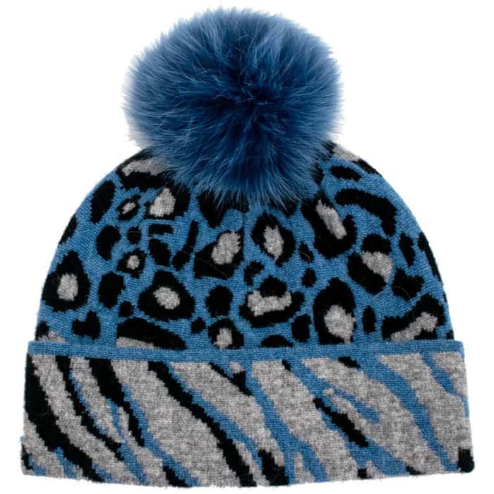 Mitchie's Matchings | Leopard Print Knitted Hat with Fox Fur Pom | Women's