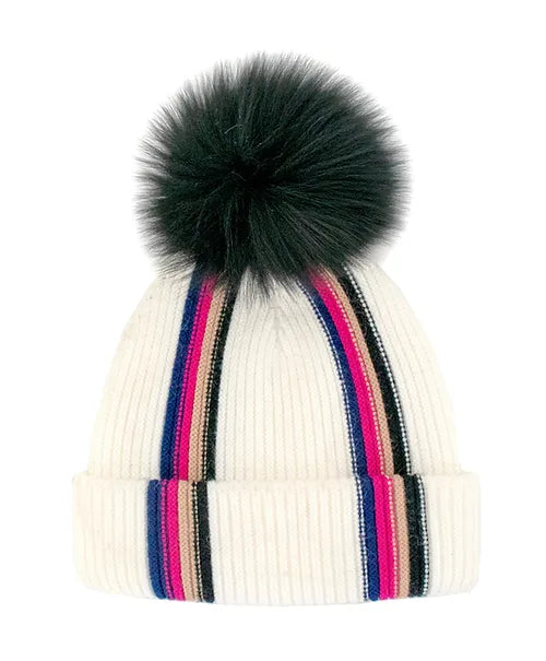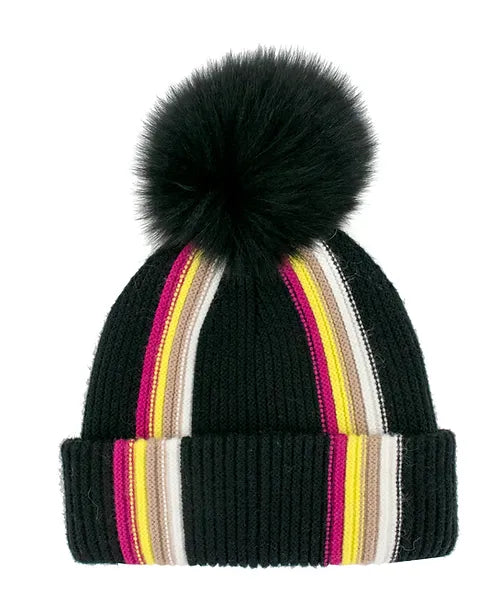 Mitchie's Matchings | Modern Stripes Knitted Hat with Fox Fur Pom | Women's