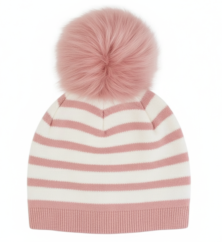 Mitchie's Matchings | Striped Knitted Hat with Fox Fur Pom | Women's