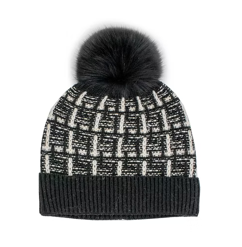 Mitchie's Matchings | Tweed Knitted Hat with Fox Fur Pom | Women's