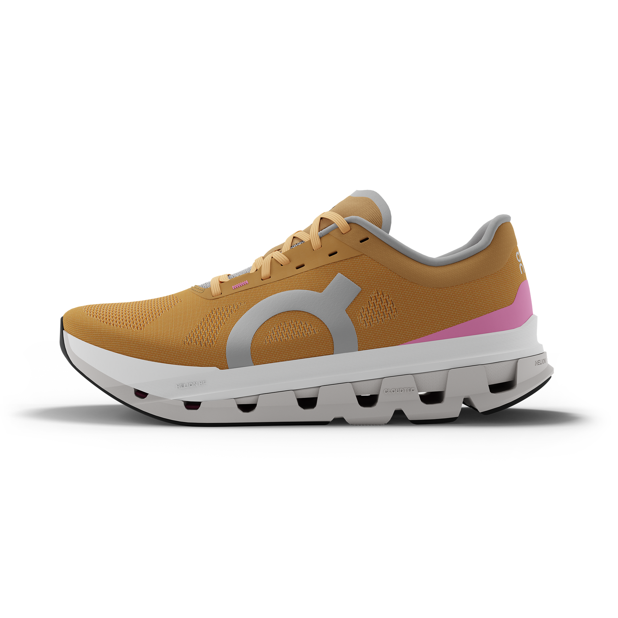 Underfoot, a top layer of Helion™ HF superfoam—borrowed from On’s pinnacle race shoes—delivers explosive energy return, while a bottom layer of standard Helion™ foam with CloudTec® cushioning keeps the ride smooth and versatile. Between them, the nylon and glass fiber Speedboard® adds snappy propulsion, and the rockered midsole geometry ensures seamless, efficient transitions from heel to toe.