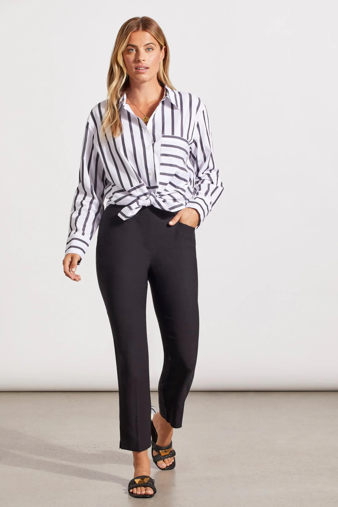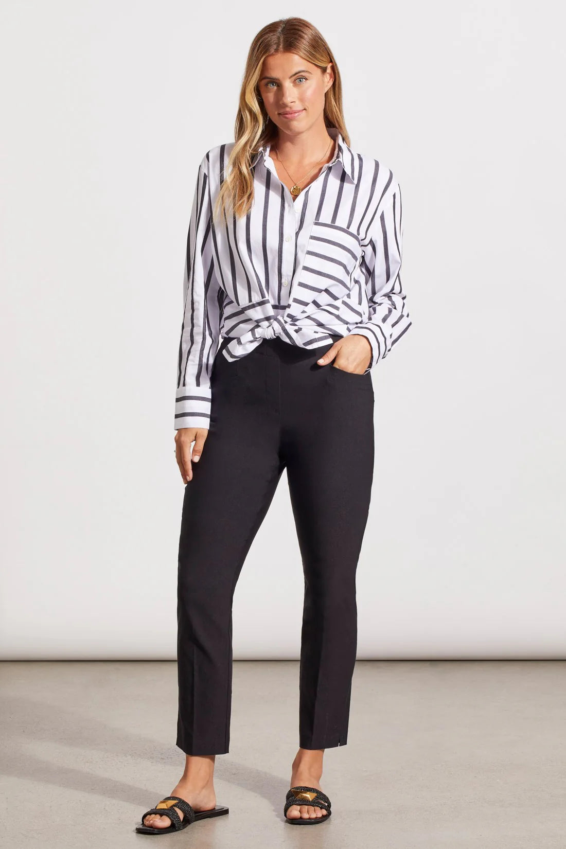 Elevate your wardrobe with these versatile pull-on ankle pants, designed for both ease and elegance. The elastic waist features FLATTEN-IT® technology for a shaping and smoothing effect, while the slim leg fit ensures a sleek silhouette. Crafted from woven twill fabric with added stretch, these pants provide comfort and style for any occasion.