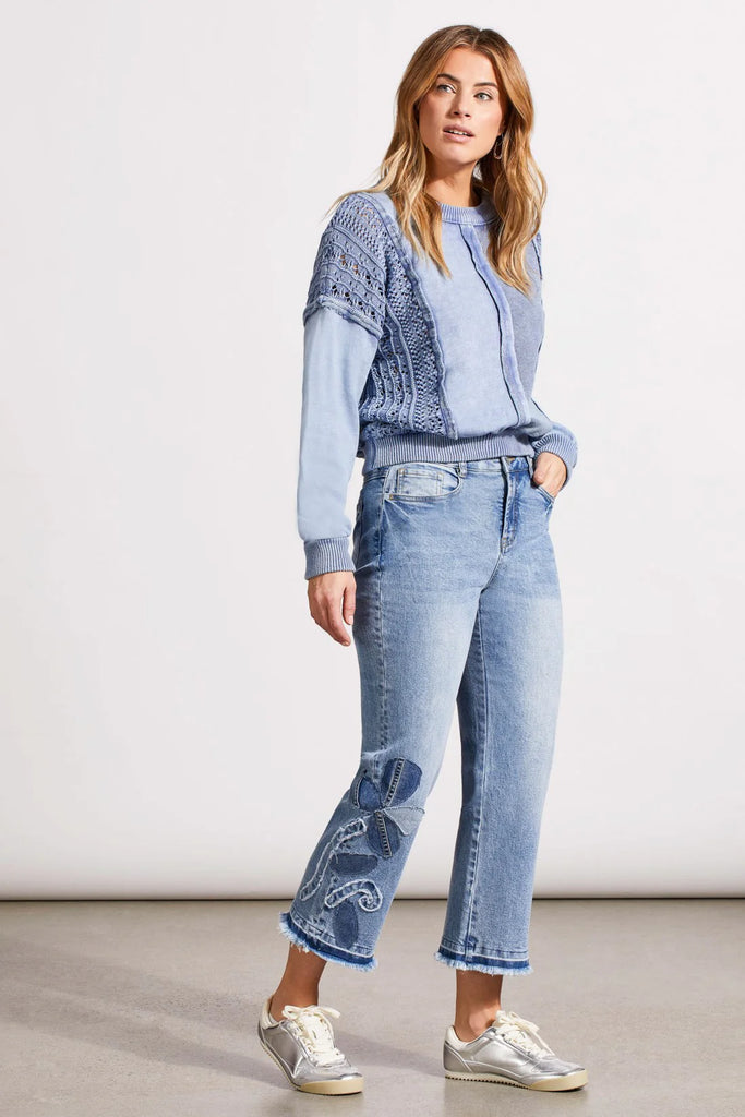 Tribal | Sophia Curvy Microflare Crop Jeans with Novelty Denim Appliqué