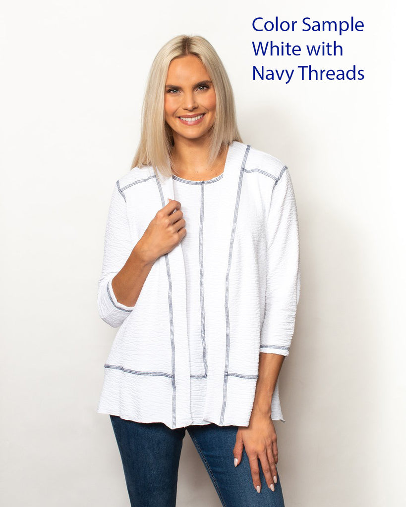 Sno Skins | Seersucker | Button Shirt with Shirt Tail Hemline | Women's | White/Navy