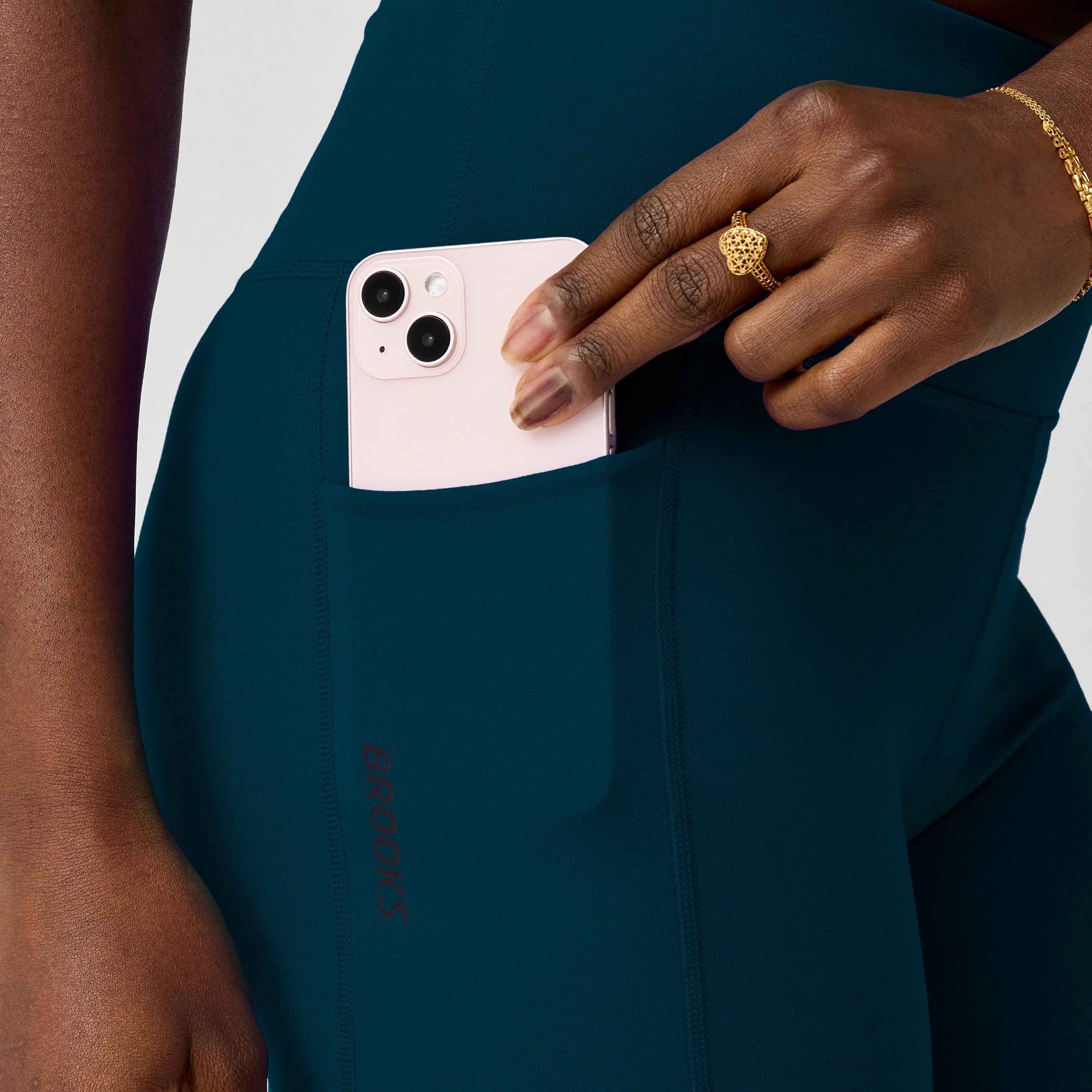 Two side drop-in pockets fit close to body for a distraction-free hold.