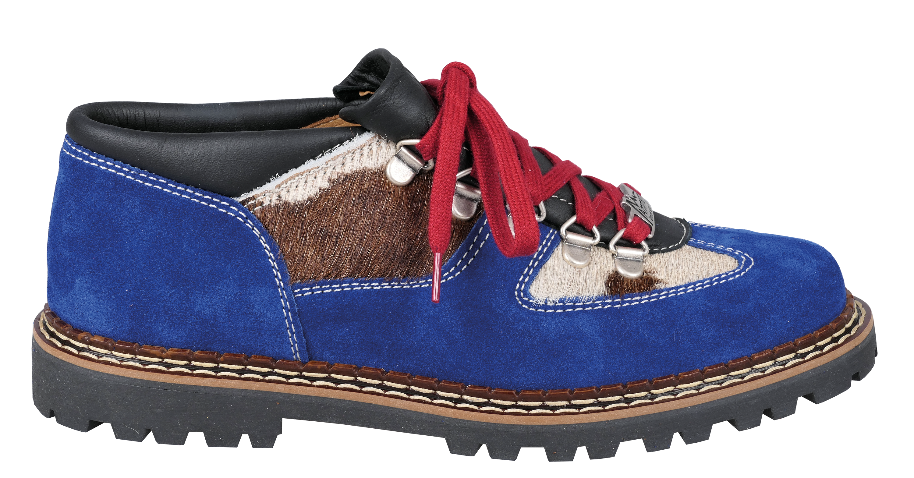 Chueli is one of Ammann’s signature models that has been in the line for many years. It is an extremely comfortable yet highly fashionable walking shoe whether walking in the city or country.. The outside material is a combination of blue suede, natural beige leather tongue and cuff and brown/white cowhide (PDV) inlays. The shoe is brightened up with red shoelaces. The inside lining is 100% leather with a sturdy yet flexible vibram type rubber sole using welt construction. Sizing comes in full sizes only and tends to fit small.