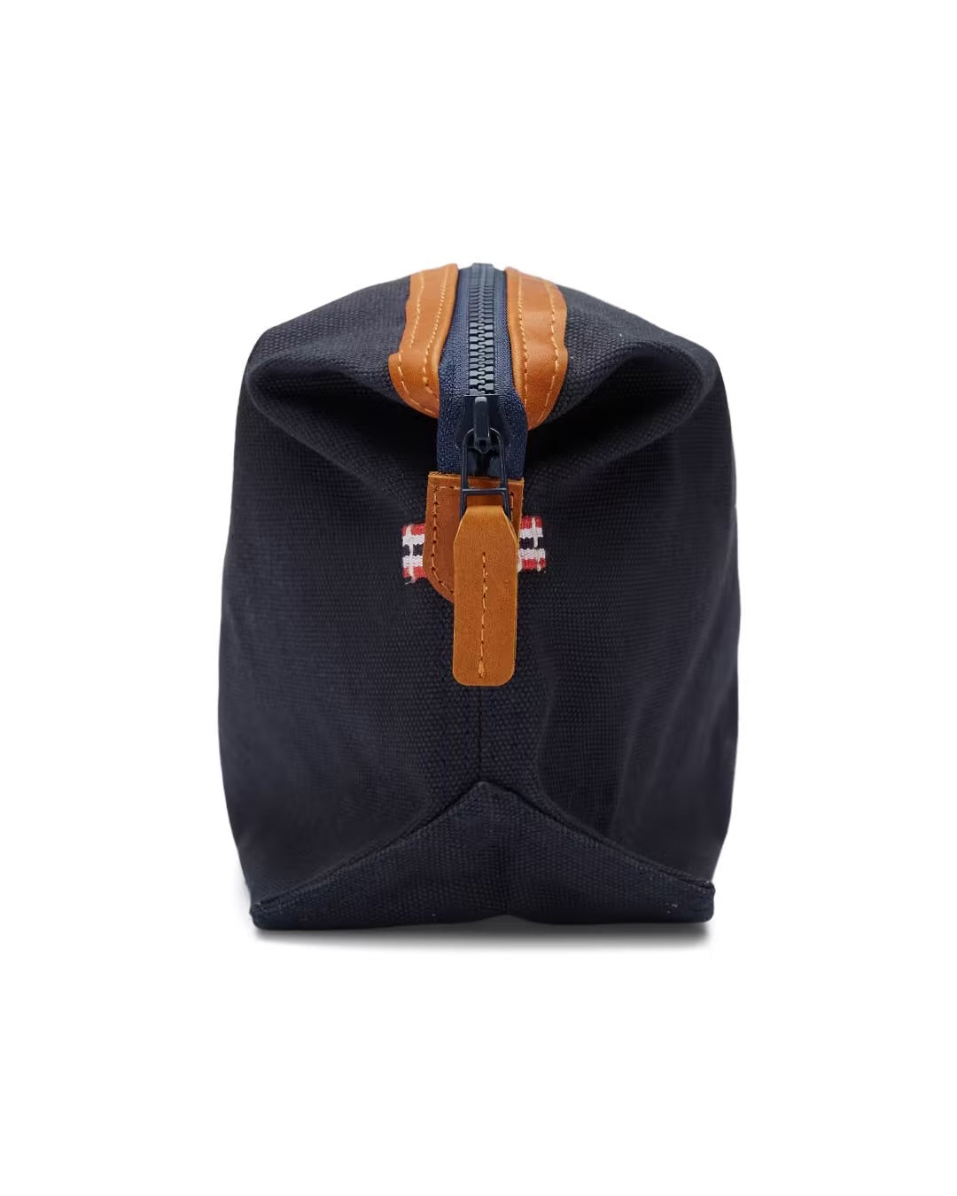The classic Wash Bag is the indispensable companion on every trip you make and helps you keep all your tolletries in place.Crafted from fully lined durable 16oz cotton canvas with trimming in cognac leather. This Wash Bag is made to travel the world, and it should, because the leather details will get richer patina the more you use it.