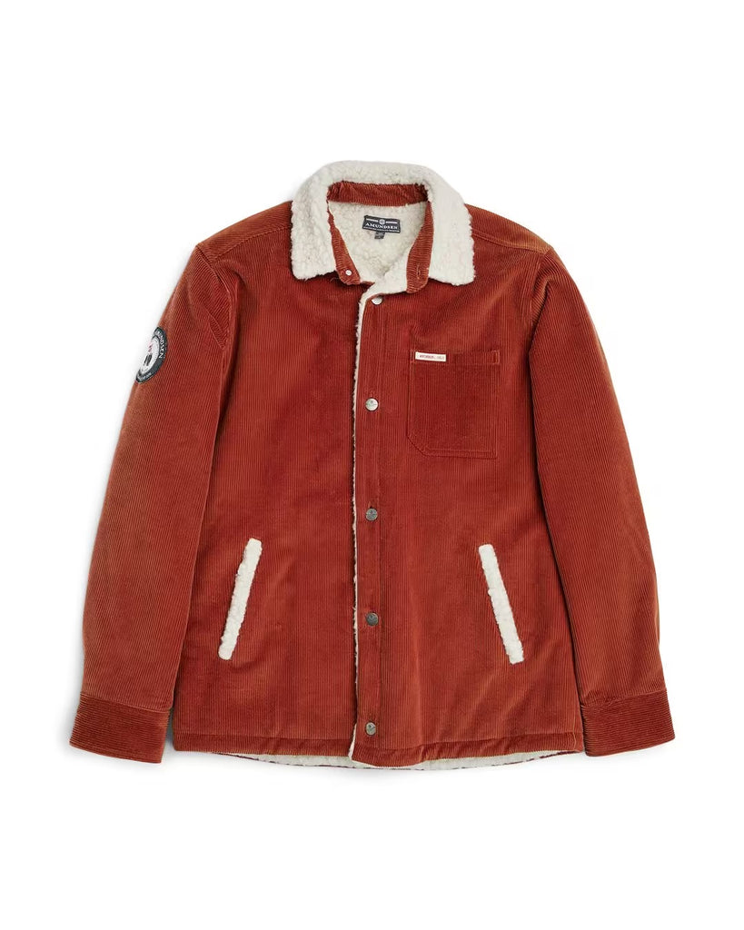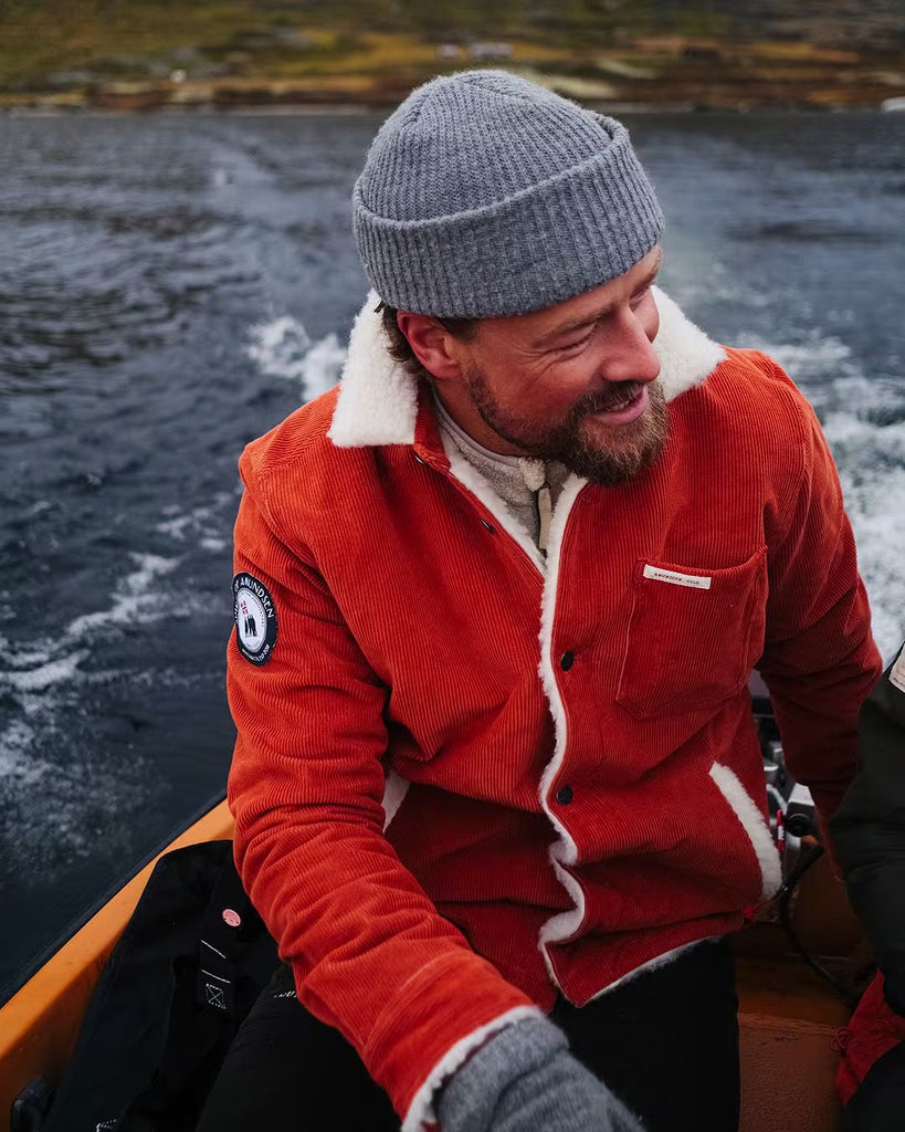 Overshirt in water-resistant stretch cotton corduroy from Cosserat Company, France. Lined with wool fleece from Pontetorto, Italy.
