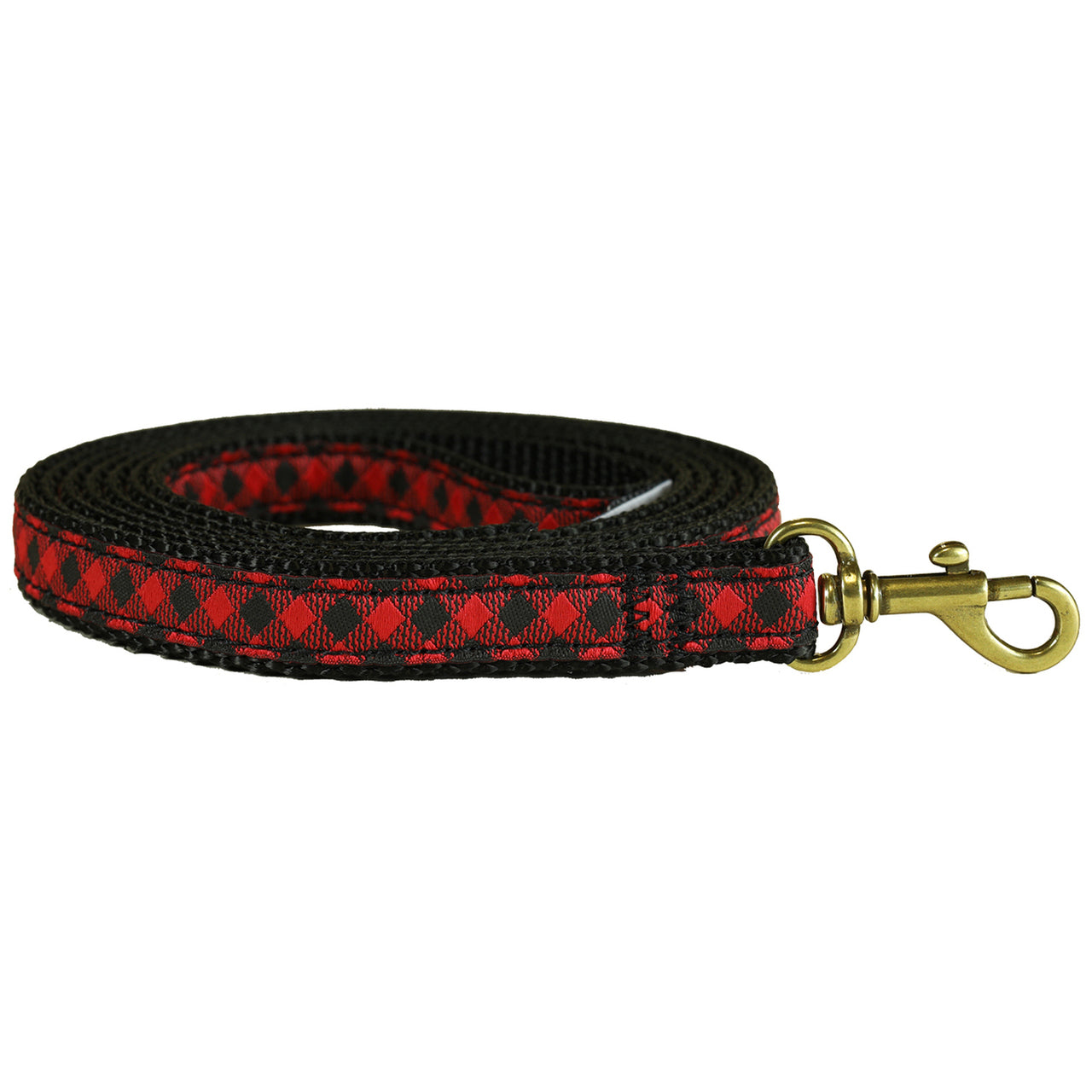 Each Belted Cow Dog Lead features signature ribbon stitched onto rugged and quick drying nylon webbing. Each Dog Lead is 6 feet in length and finished with a bolt snap hook in Old English brass finish. Made in the USA. Max Dog Weight 20 Lbs.