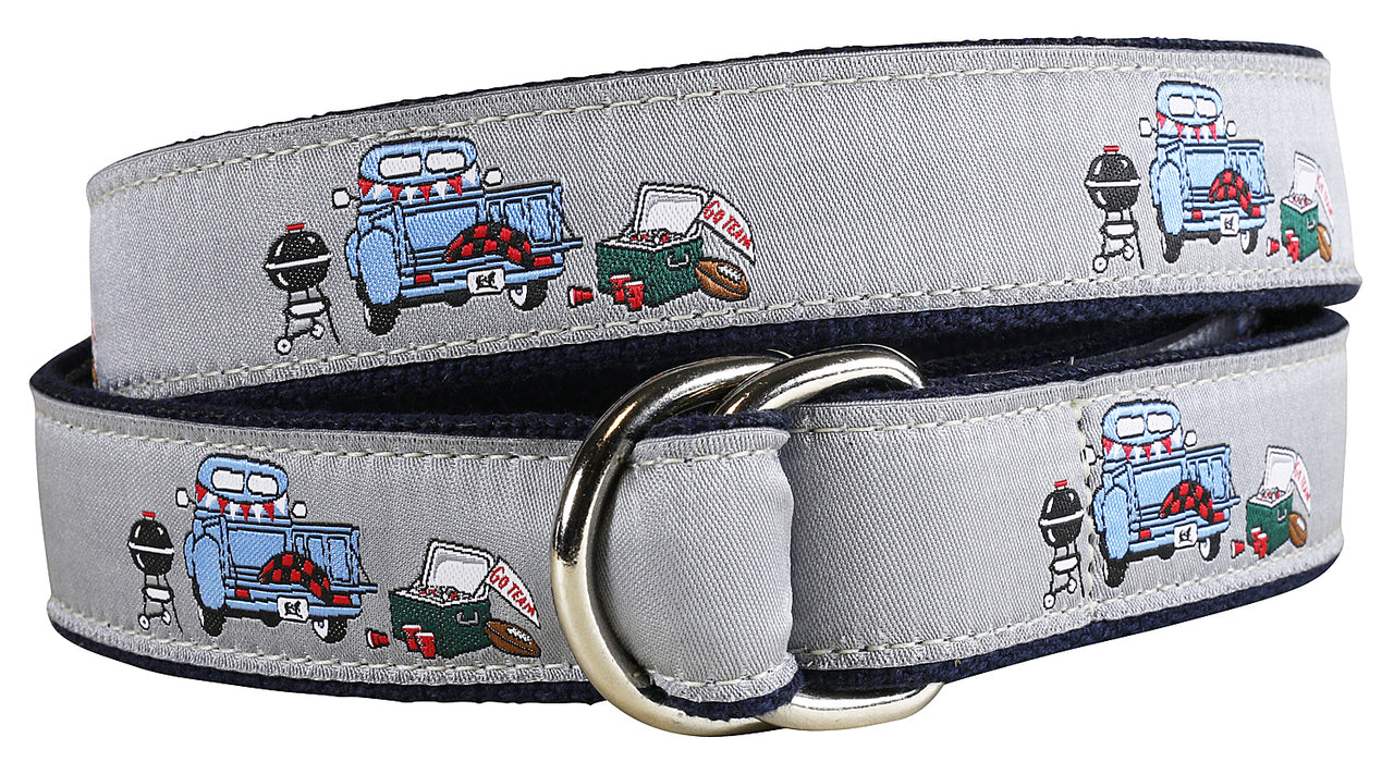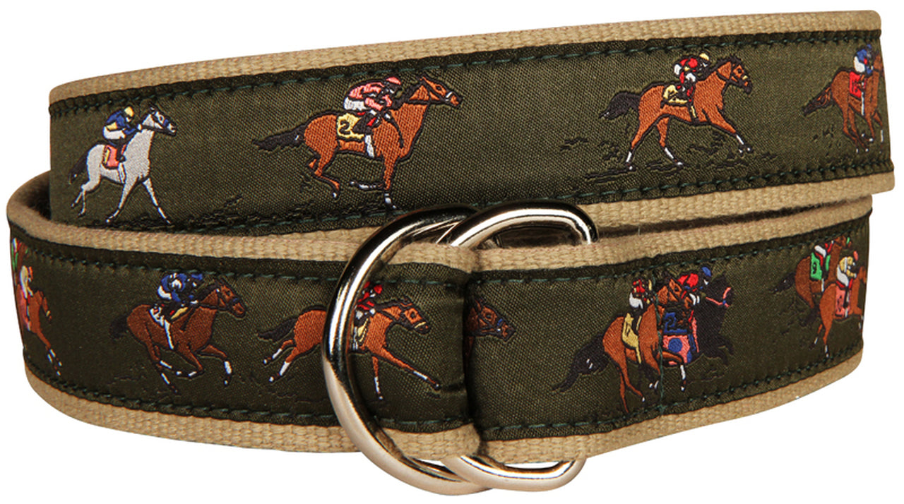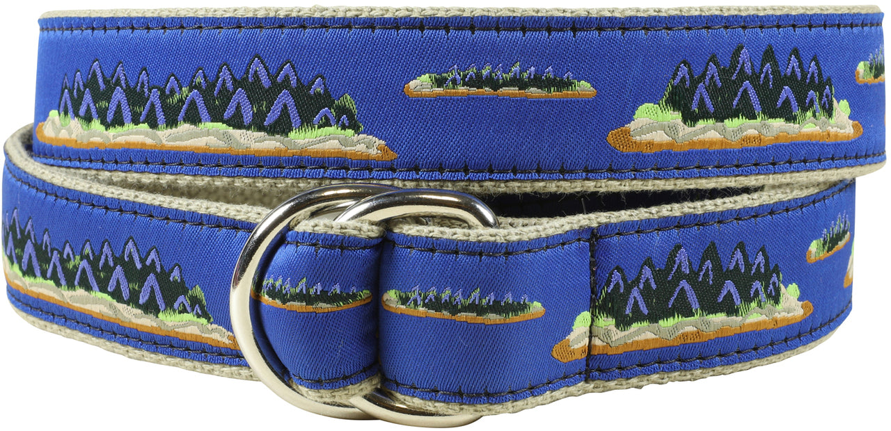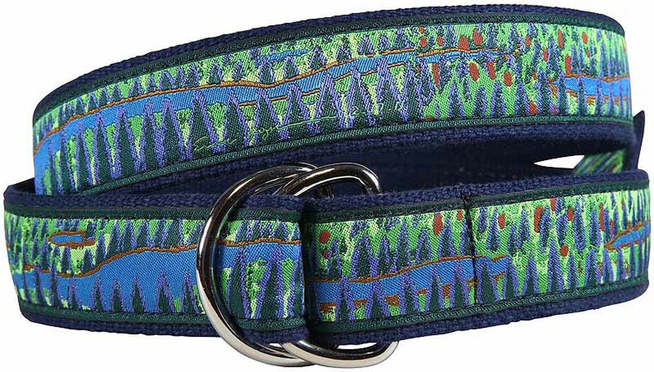Each Belted Cow Ribbon D-Ring Belt has an artist-designed signature ribbon stitched onto 100% cotton webbing. We finish each d-ring belt with Nickel-plated d-rings. Proudly made in the USA.