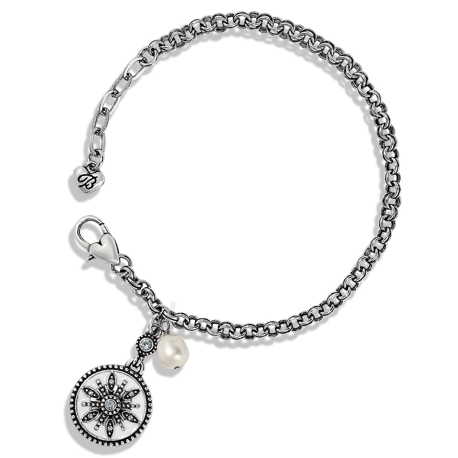 A tiny snowflake sparkles against a hand-enameled background, with a delicate natural pearl charm to accent the look. A great bracelet to wear all winter long!