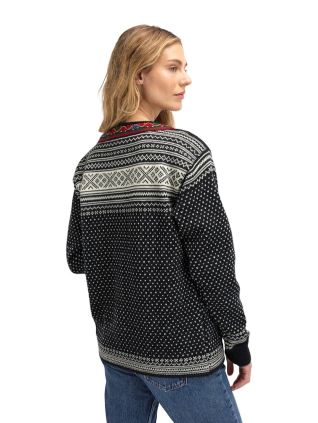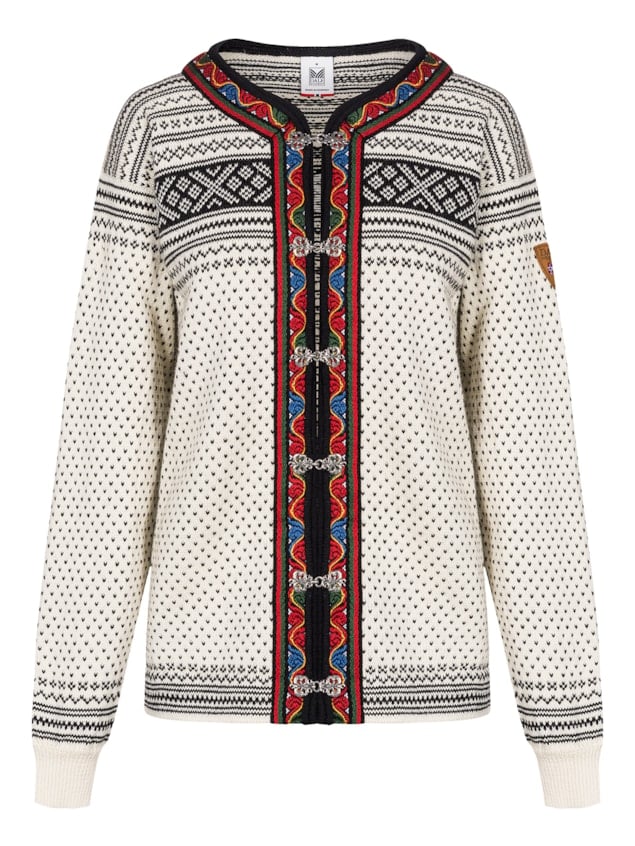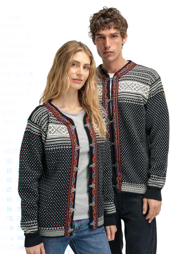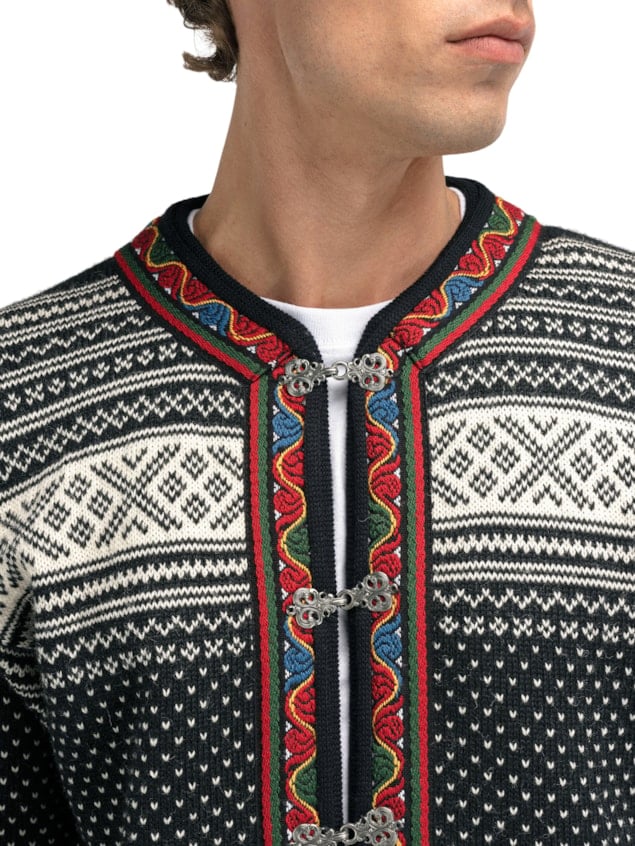 The Setesdal design is the most recognizable Norwegian pattern and has been knitted for generations. The small v-shaped dots are known as the lice pattern, while the crosses were believed to protect from evil spirits. Made with long-lasting Norwegian wool, Norwegian-made pewter clasps and embroidered band, identical to the original design.