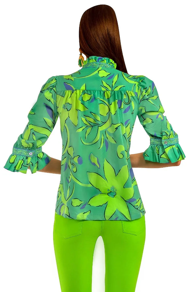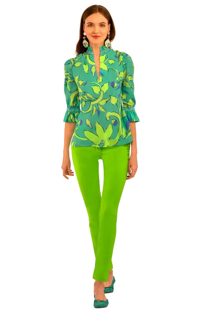 Gretchen Scott | Ruffleneck Tunic | Women's | Turquoise Full Bloom