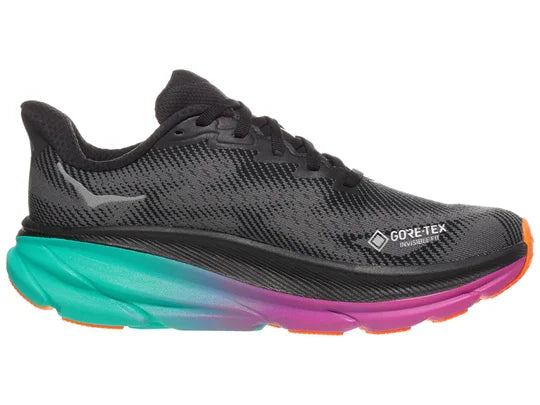 The HOKA Clifton 9 GTX takes the beloved Clifton series to the next level, offering the same exceptional performance in any weather. Updated with lighter, more responsive CMEVA foam and an additional 3mm of cushioning, this daily trainer provides a revitalized underfoot feel for a smoother ride. Designed to tackle wet conditions, the Clifton 9 GTX features traction pods in the outsole to keep you stable on slick surfaces, while the GORE-TEX Invisible Fit upper ensures your feet stay dry and comfortable. Paired with HOKA's signature early-stage meta-rocker, this shoe delivers a seamless, cushioned experience that’s perfect for runners and walkers alike, rain or shine.
