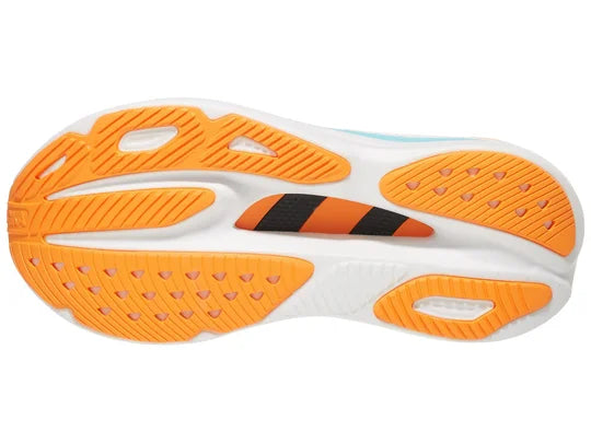 Hoka revolutionized the game with the Skyward X, taking softness and smoothness to new heights. This innovative trainer boasts a groundbreaking suspension system with a convex carbon fiber plate, enabling it to compress and rebound with every stride. Closest to the foot is a soft, highly resilient PEBA foam for a lively and cushioned experience, while a super critical EVA frame offers stability for your smoothest miles yet.