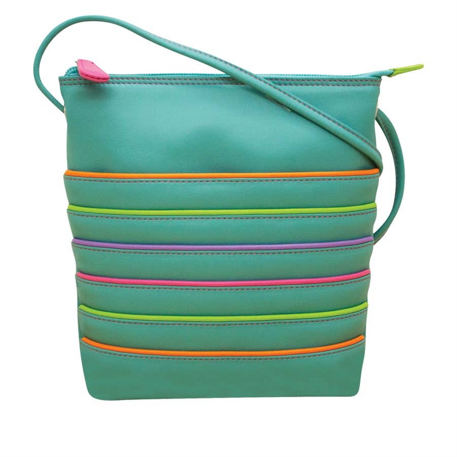 Zip top leather midi sac with a crossbody strap that can be knotted inside to adjust the length.
