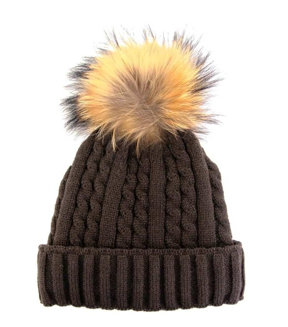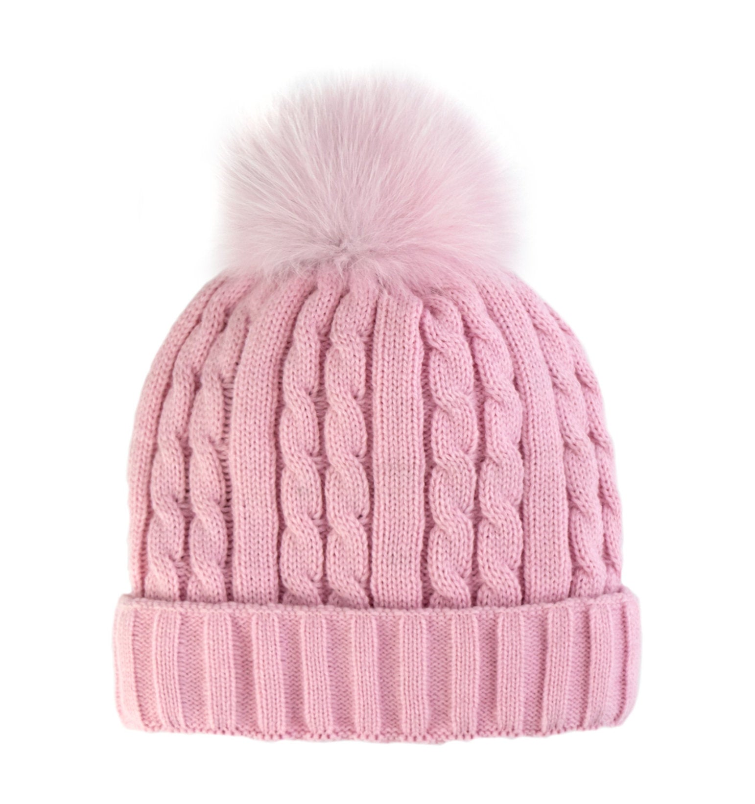 Mitchie's Matchings | Cable Knit Beanie with Fleece Lining and Fur Pom