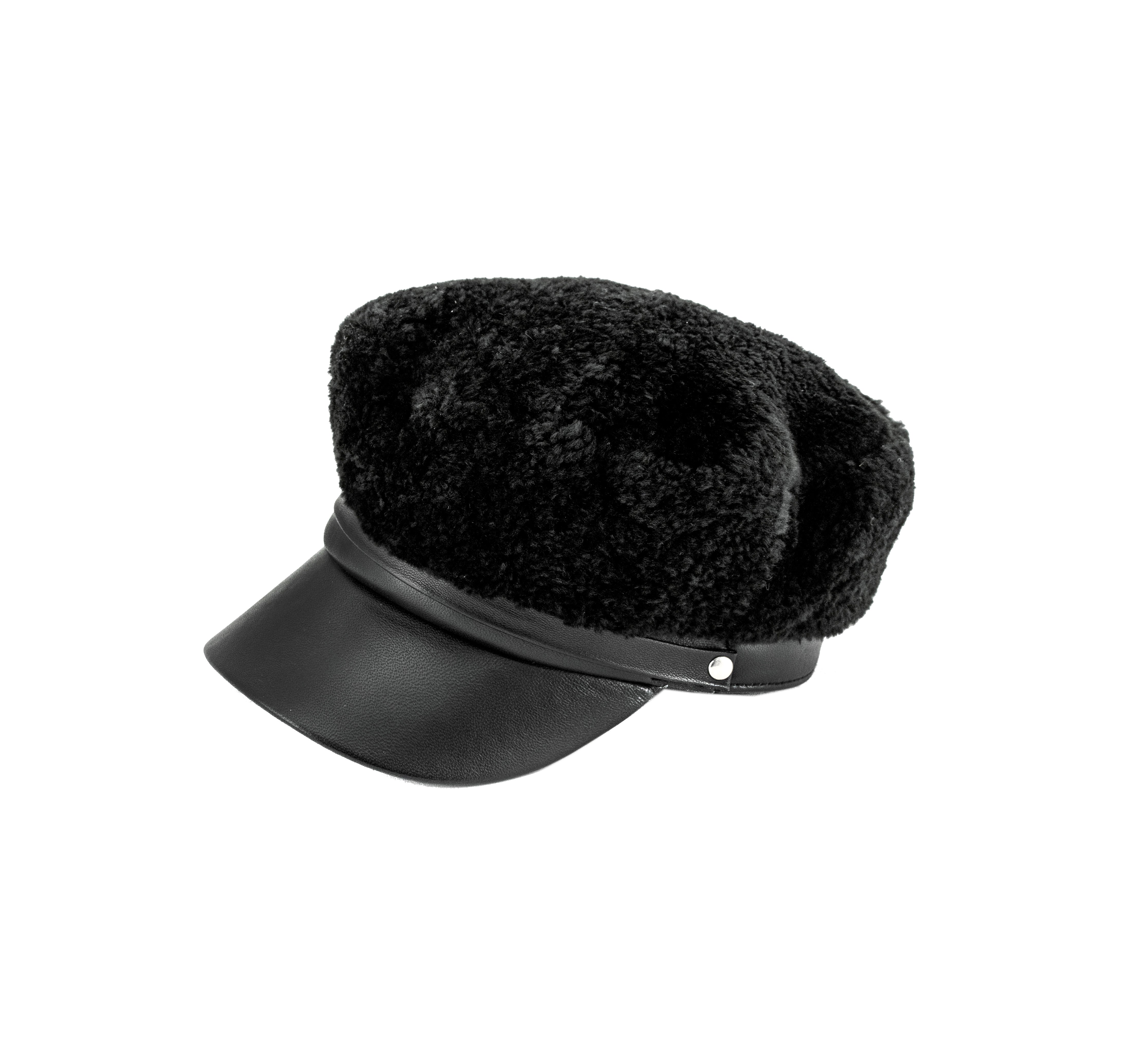 Mitchie's Matchings | Curly Lamb Chauffeur Hat with Leather Trim