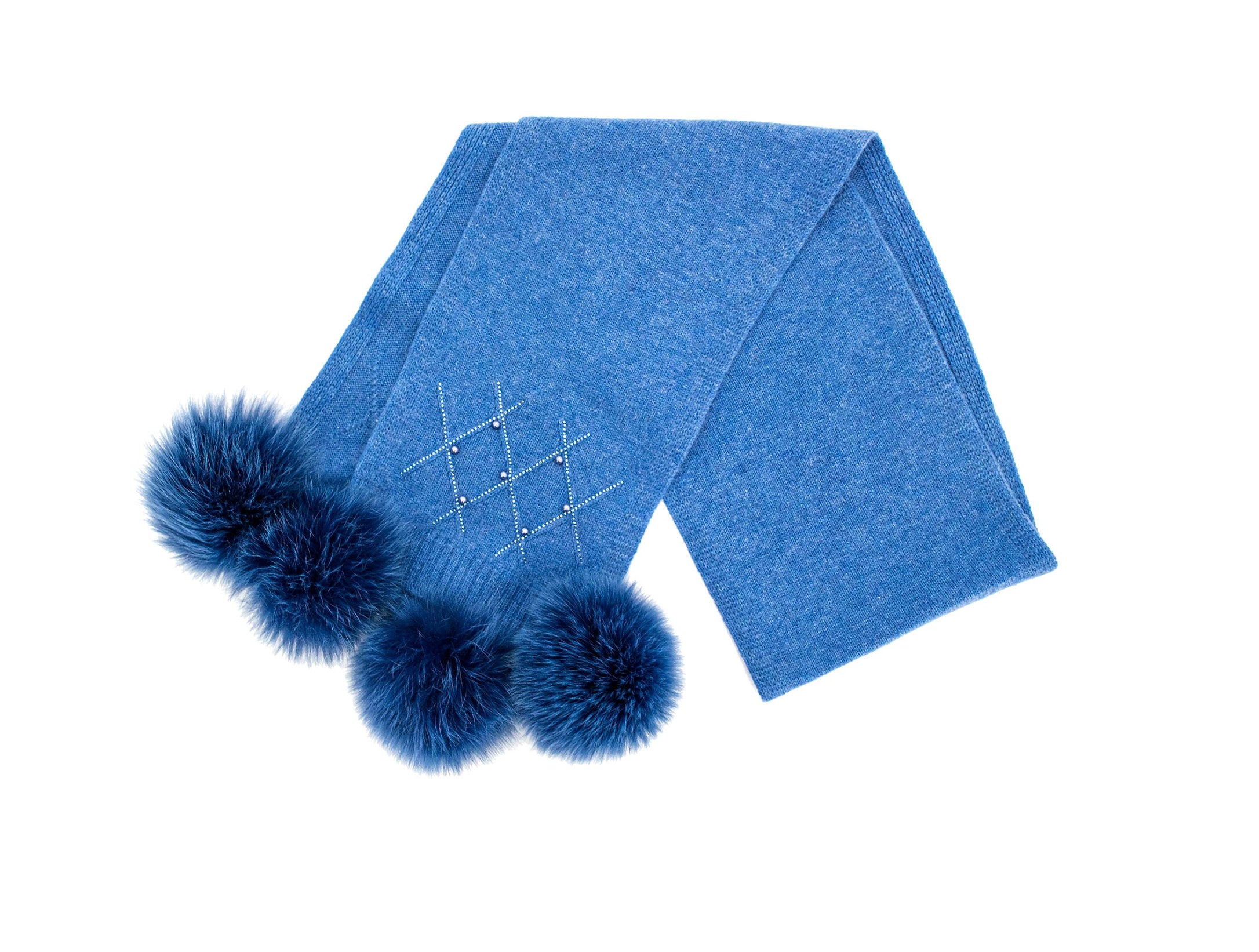Mitchie's Matchings | Diamond Pattern Scarf with Fox Fur Poms | Women's