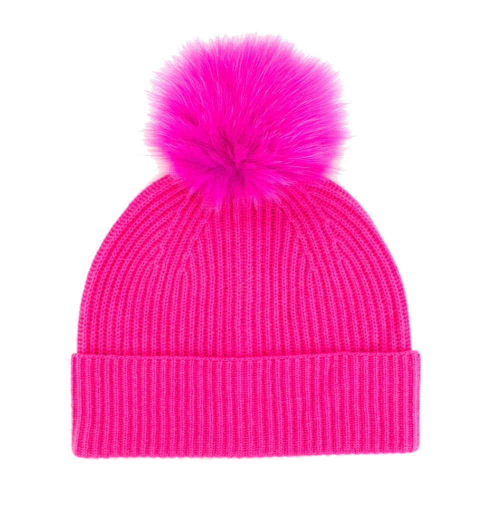 Ribbed Cashmere Knit Hat with Fox Fur Pom – Canadian Design