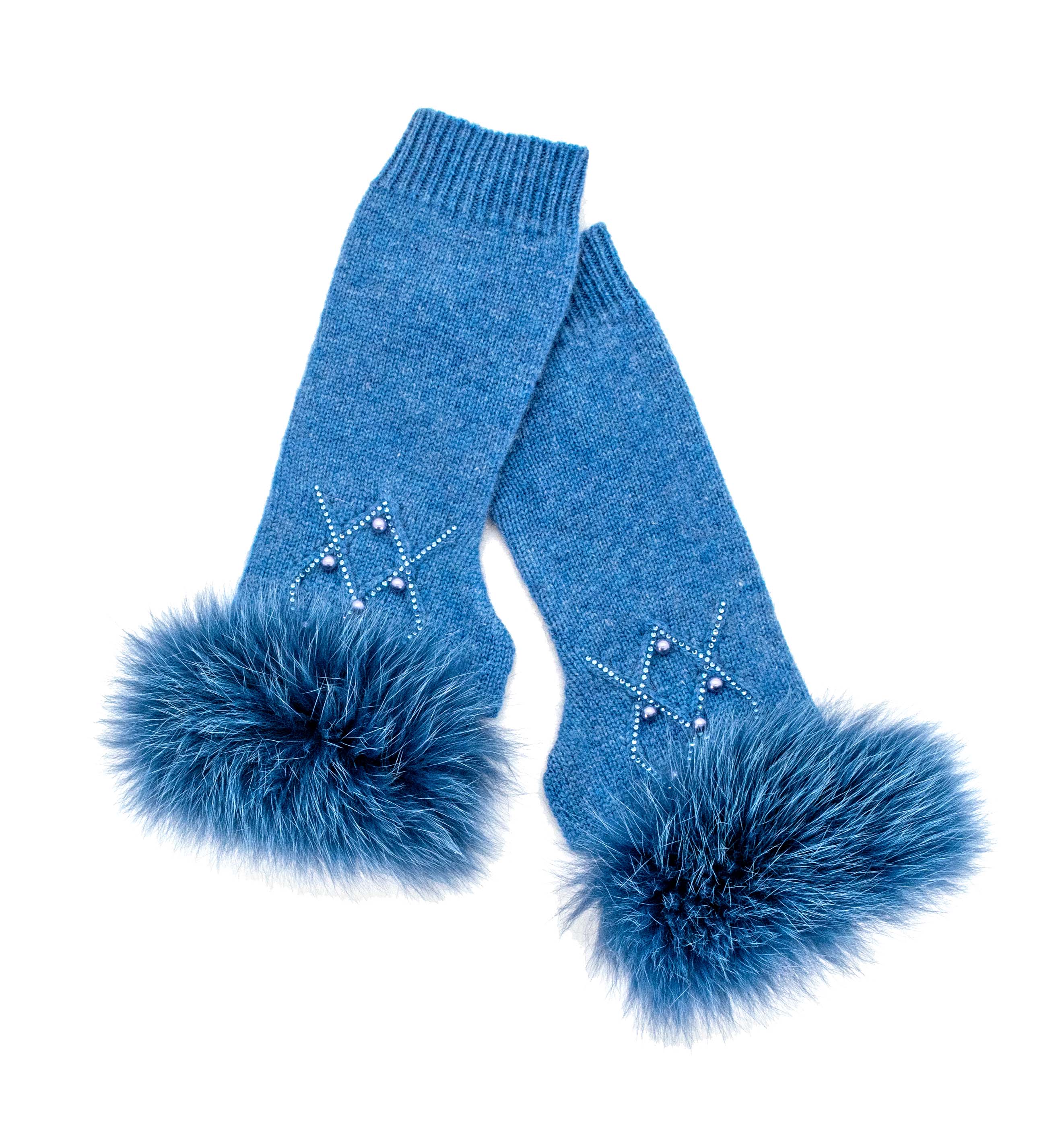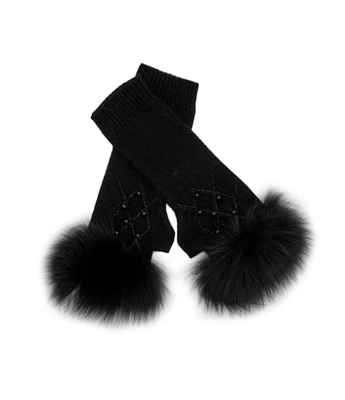 Mitchie's Matchings | Knitted Wool Fingerless Gloves with Fox Trim | Women's