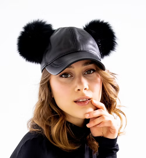 Turn heads with the Mitchie's Matchings Leather Baseball Hat, a bold statement piece that combines classic style with playful charm. This premium leather cap features two adorable faux fur poms positioned like iconic mouse ears, giving you a fun, whimsical look that's perfect for making an impression. Whether you're hitting the trails or heading out for casual adventures, this hat delivers both sophistication and personality. The quality leather construction ensures durability, while the charming dual poms add that touch of magic to your everyday style. Embrace your playful side without compromising on quality.
