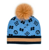 Elevate your winter style with this sophisticated knitted hat, featuring an eye-catching monogram pattern and contrasting cuff that adds refined detail. The luxurious fox fur pompom crowns the design, delivering both warmth and undeniable elegance. Perfect for runners who refuse to compromise on fashion during cold-weather training or everyday wear.