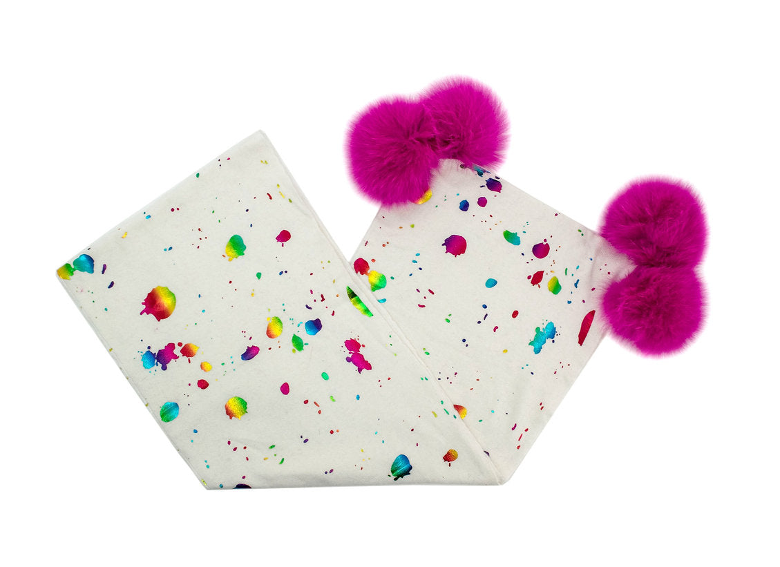 Mitchie's Matchings | Paint Splash Knitted Scarf with Fox Fur Poms