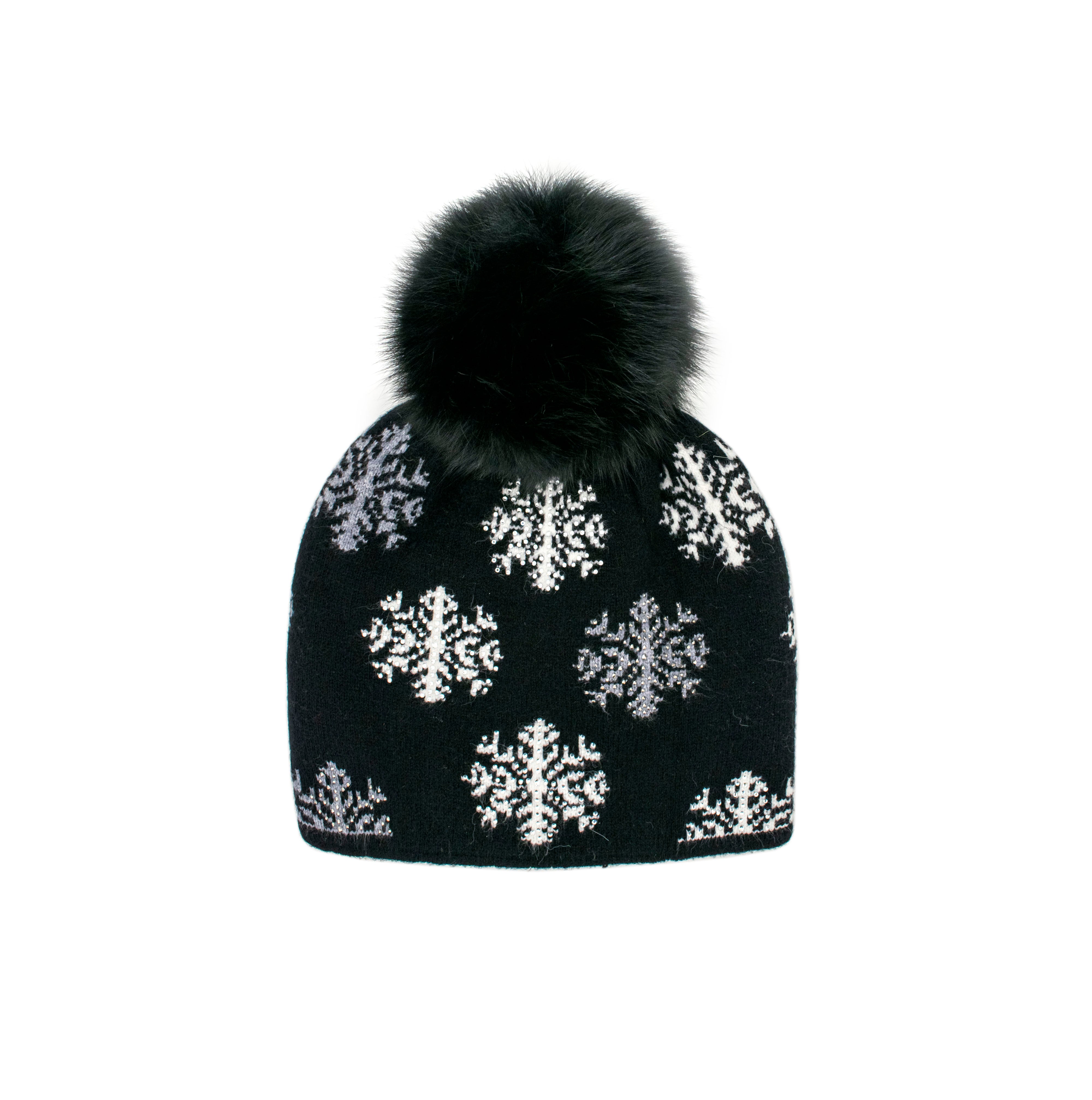 Mitchie's Matchings | Scattered Snowflakes Knitted Hat with Fox Fur Pom