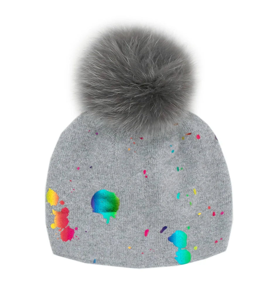 Mitchie's Matchings | Paint Splash Knit Beanie with Fox Fur Pom
