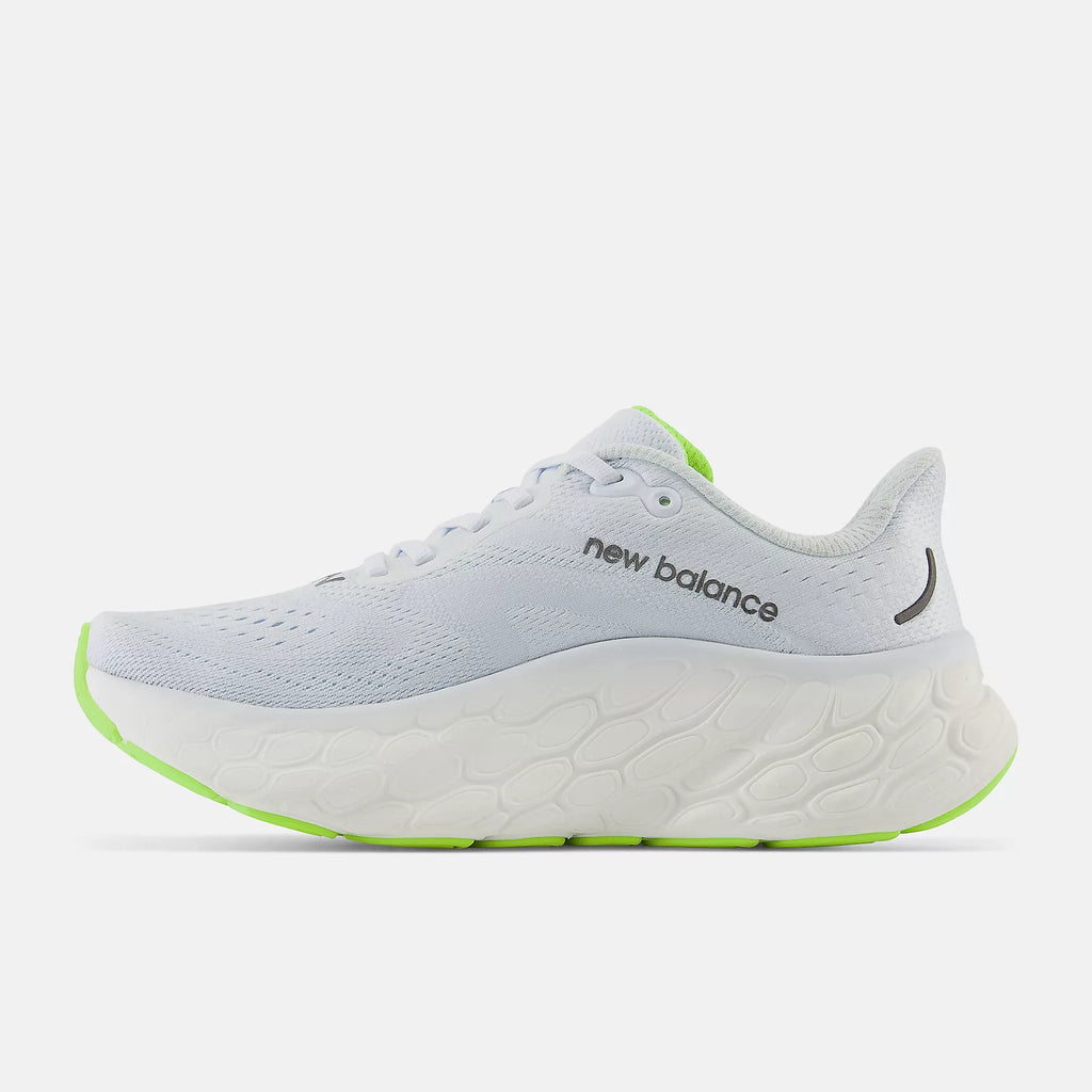 The New Balance Fresh Foam X More v4 is the ultimate in comfort and performance. Enhanced with New Balance's signature technology, this shoe offers unmatched stability, efficiency, and cushioning. The Fresh Foam midsole has been widened to boost impact dampening and support during runs and walks. To maintain forward momentum and ensure smooth transitions, the More v4 features the largest midsole rocker in the Fresh Foam lineup.