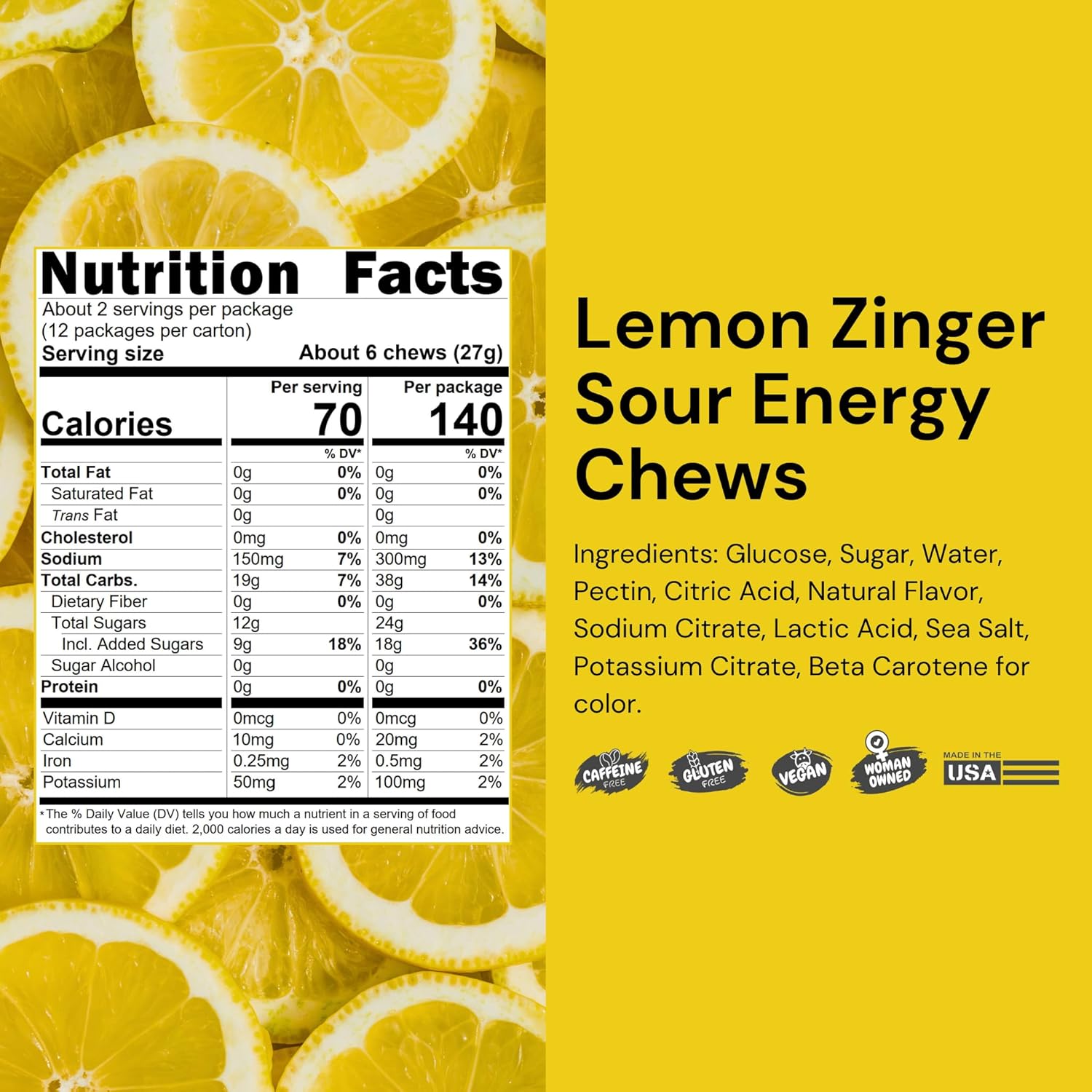noogs | Sour Energy Chews | Lemon Zinger | 1.9 oz