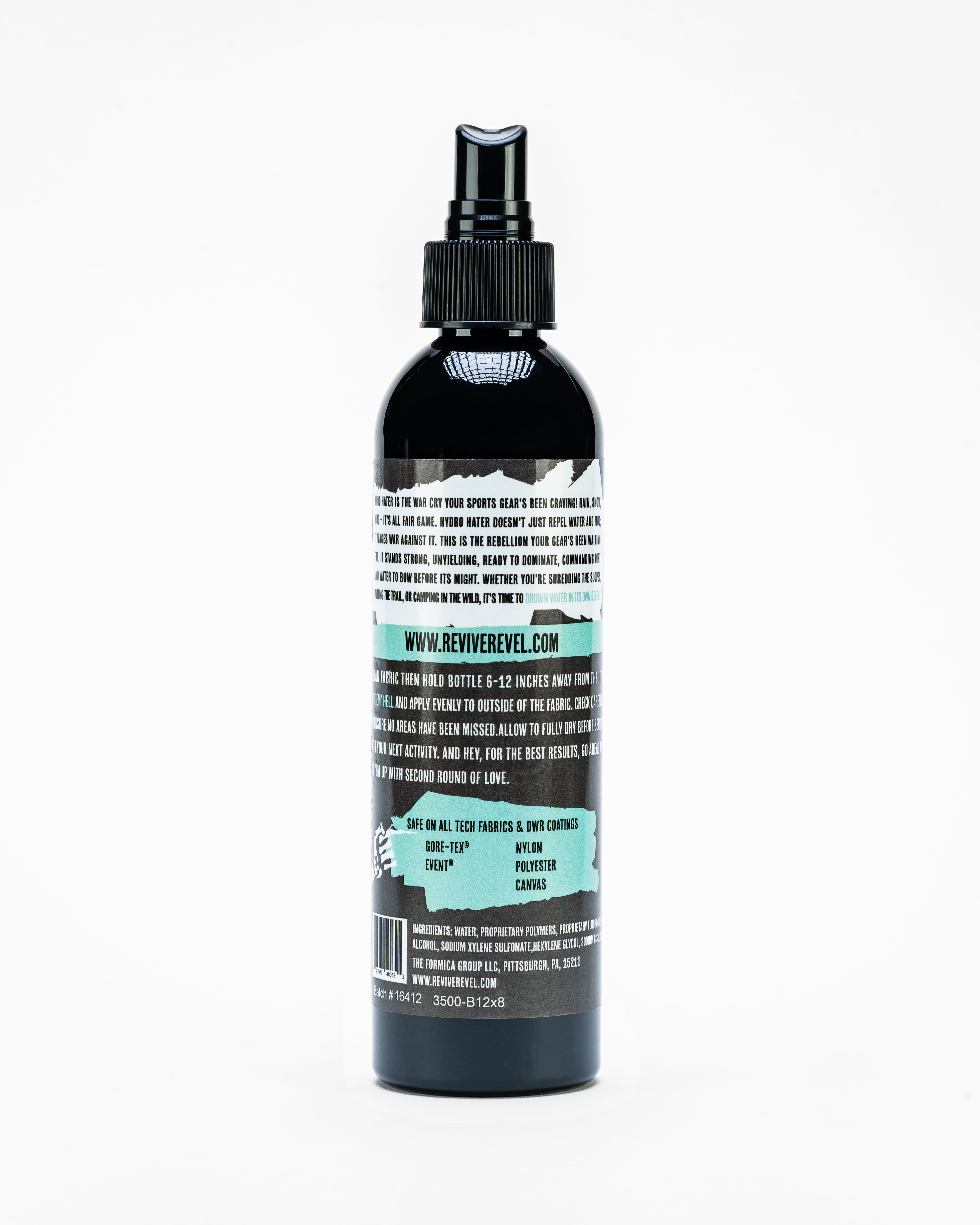 Unleash ultimate fabric protection with Revive & Revel’s Hydro Hater Waterproofing Spray. Designed for modern adventurers, this spray shields your gear from the elements, keeping it dry while maintaining breathability. Stay prepared and protected with Hydro Hater on your next outdoor journey.