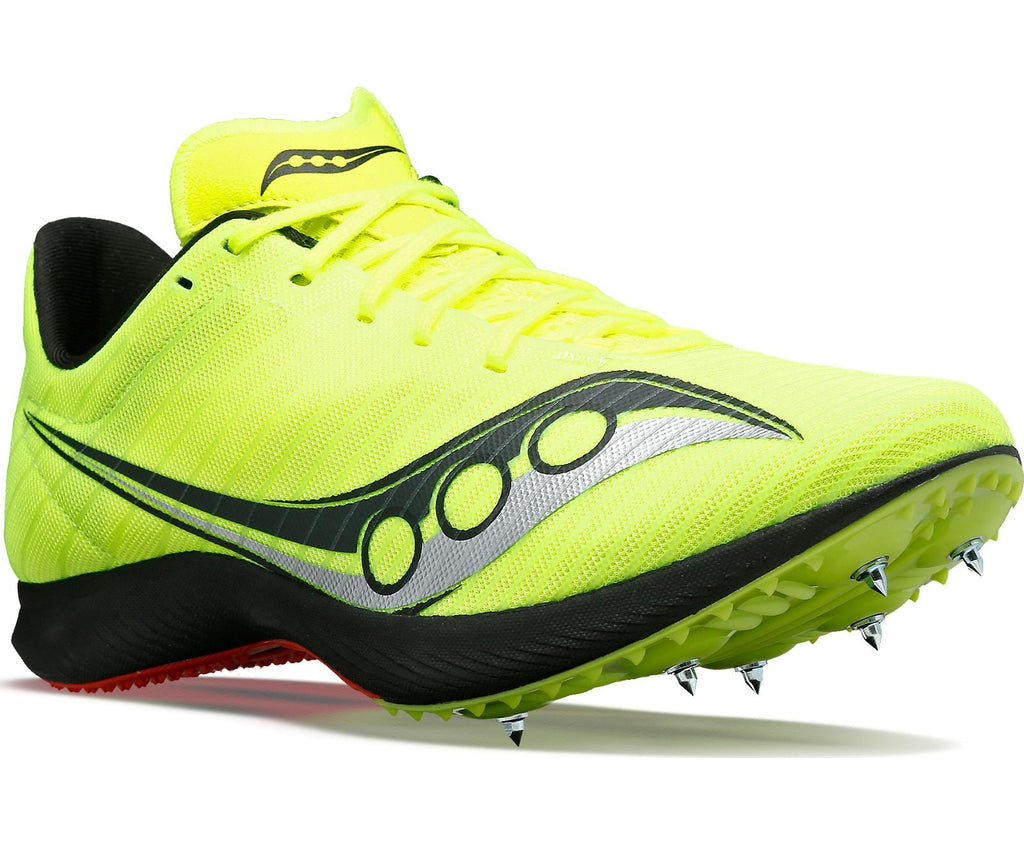 Unlock your racing potential with the Saucony Velocity MP. Designed for versatile athletes, this shoe is ready to perform across multiple events with a lightweight, responsive build and secure 6-pin spike plate for optimal traction on any track. Engineered to deliver comfort without compromise, the Velocity MP ensures you can push through races back-to-back without missing a step. Make every race your best with this ultimate competition shoe built to fuel your speed and endurance.